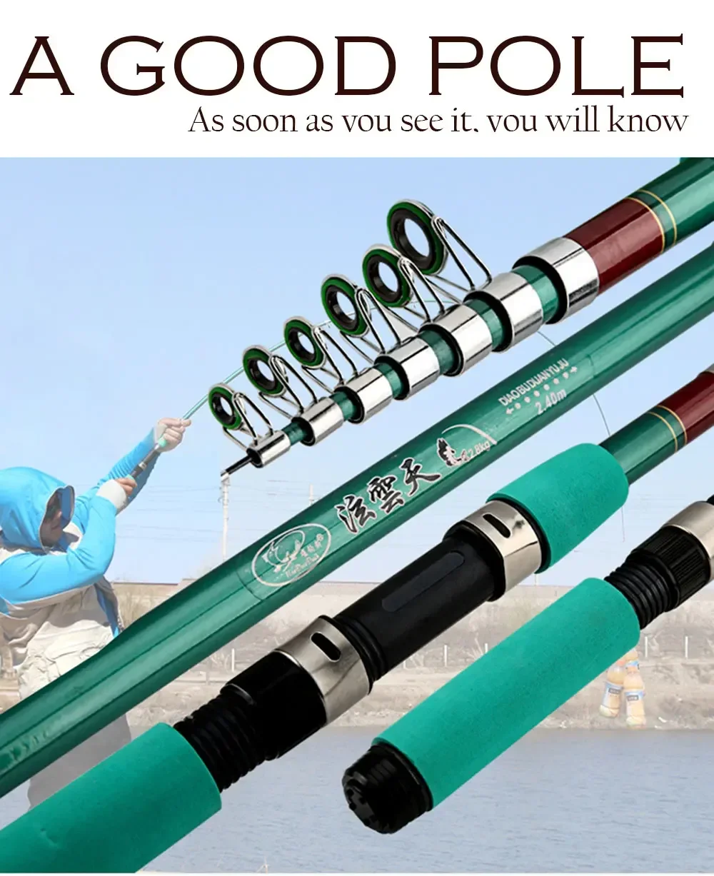 Caña de pescar telescópica súper corta, fácil de transportar.