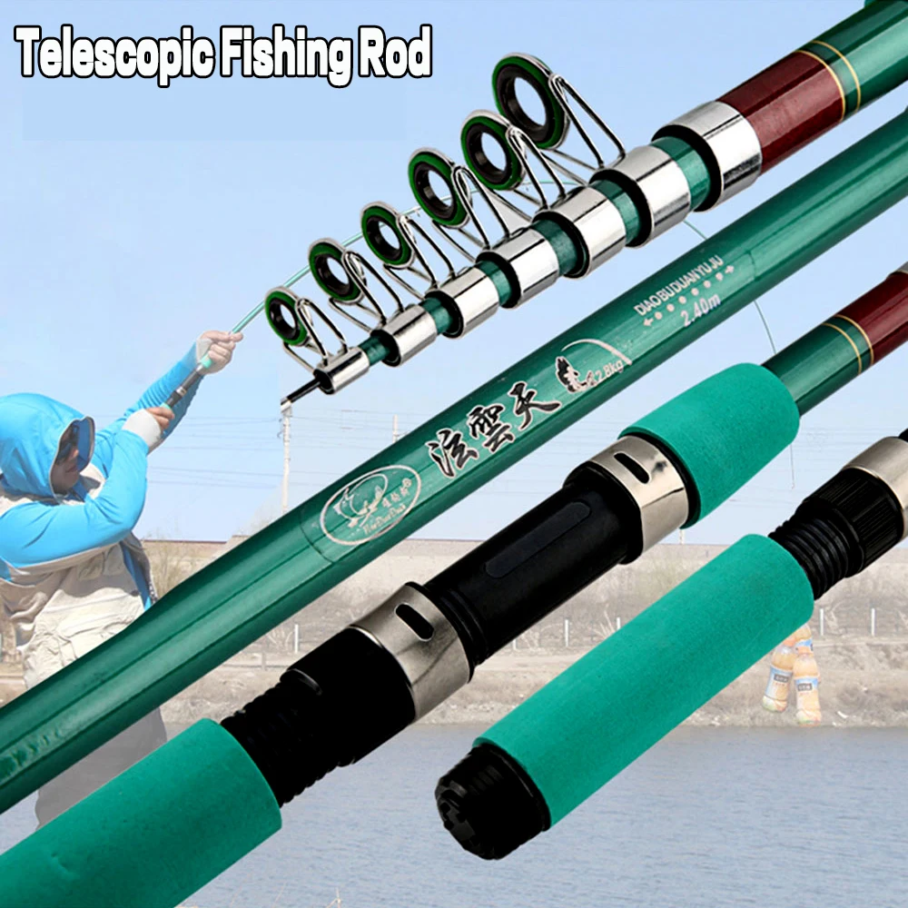 Caña de pescar telescópica 1,8/2.1/2.4/2.7/3.0/3.6M, práctica caña de pescar de fibra de carbono reforzada, cañas de pescar de mar portátiles para exteriores