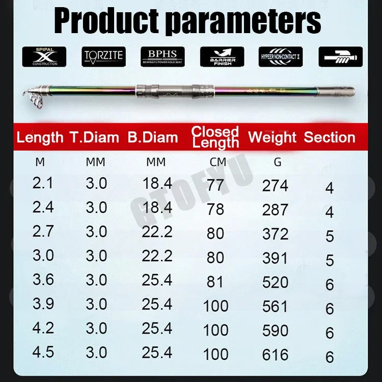 Señuelo: 10-300 g, Longitud: 1-2,5 M, Prueba: 20 kg arriba