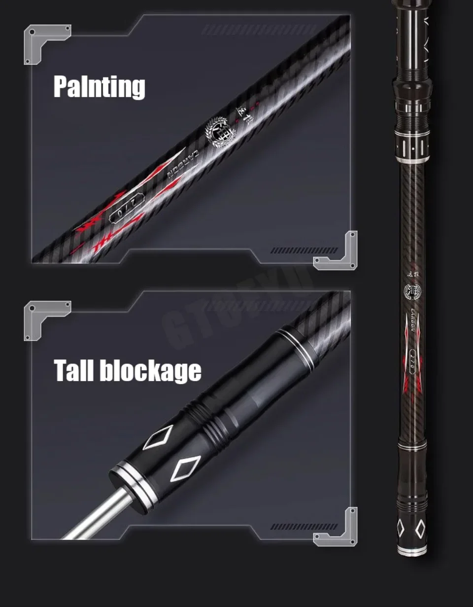 【MATERIAL DE FIBRA DE CARBONO】Esta caña de pescar está hecha de fibra de carbono.El cuerpo de la caña de pescar es más grueso, fuerte y duradero. Adecuado para tiros largos y pesca grande. La fibra de carbono GTOFYU de 30 toneladas puede levantar pesas de hasta 20 kg.【DISEÑADO PARA PESCOS GRANDES】El material de fibra de carbono de alta densidad hace que la caña de pescar sea fuerte y fuerte.Audaz la primera parte para evitar roturas.Por lo tanto, es muy adecuado para capturar lubinas grandes, bagres, salmón, etc., adecuado para la pesca en mar, barco y rocas, playas de arena y lagos de agua dulce.【BASE DE RUEDAS MÓVIL】Fácil de ajustar la distancia entre ejes, ajuste la distancia entre el carrete de pesca y el mango, ajuste el cómodo método de pesca.【Fácil de llevar Nuevo】Las cañas de pescar telescópicas profesionales están integradas con el nombre de la comodidad.Estas cañas son más fáciles de usar que las cañas de pescar tradicionales.Estas cañas de pescar telescópicas son fáciles de transportar y buenas de usar. La longitud después del cierre es de aproximadamente 95 cm.【MEJOR ELECCIÓN DE REGALO】El poste tiene una apariencia elegante y una mano de obra exquisita, lo que lo convierte en un gran regalo para padre, esposo o novio en 2025. Si la varilla se daña debido al envío, ofrecemos reemplazo gratuito.
