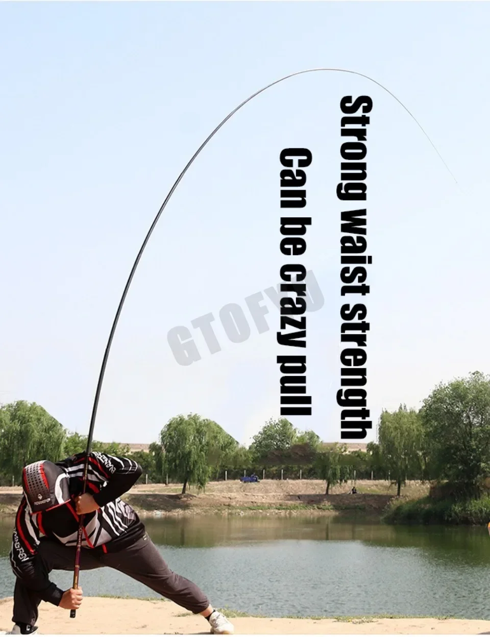 Caña de pescar telescópica de 2,7 M/4,5 M/5,4 M/6,3 M/7,2 M/8M/10M, depósito de carbono, caña de pescar para estanque, caña de pescar de mano de fibra dura súper ligera