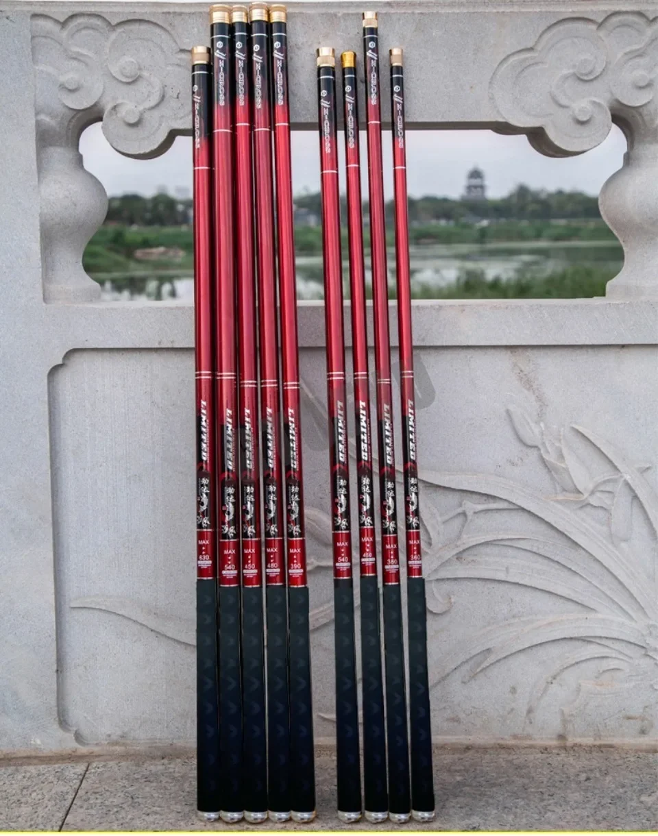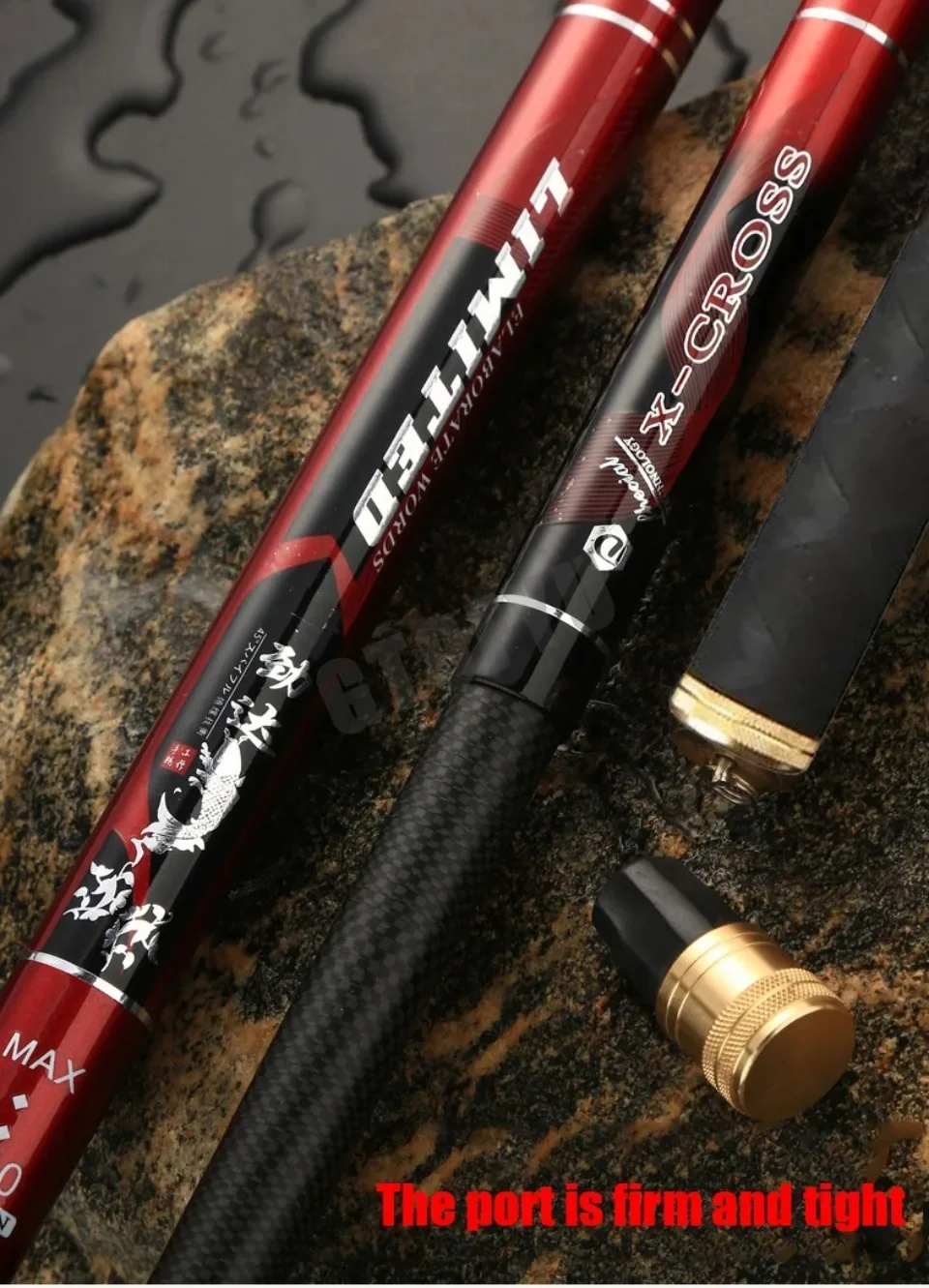 Caña de pescar telescópica de 2,7 M/4,5 M/5,4 M/6,3 M/7,2 M/8M/10M, depósito de carbono, caña de pescar para estanque, caña de pescar de mano de fibra dura súper ligera