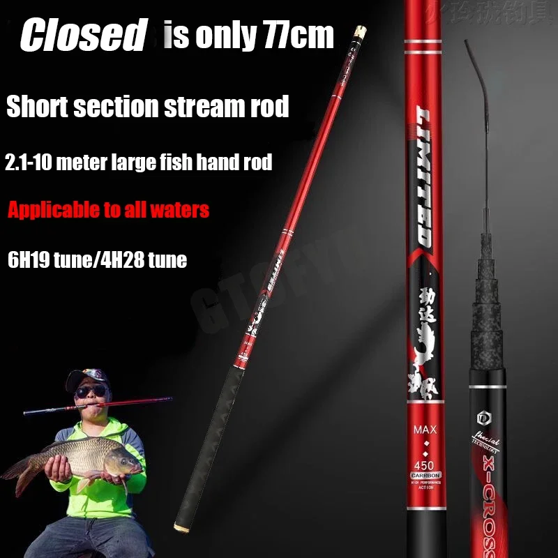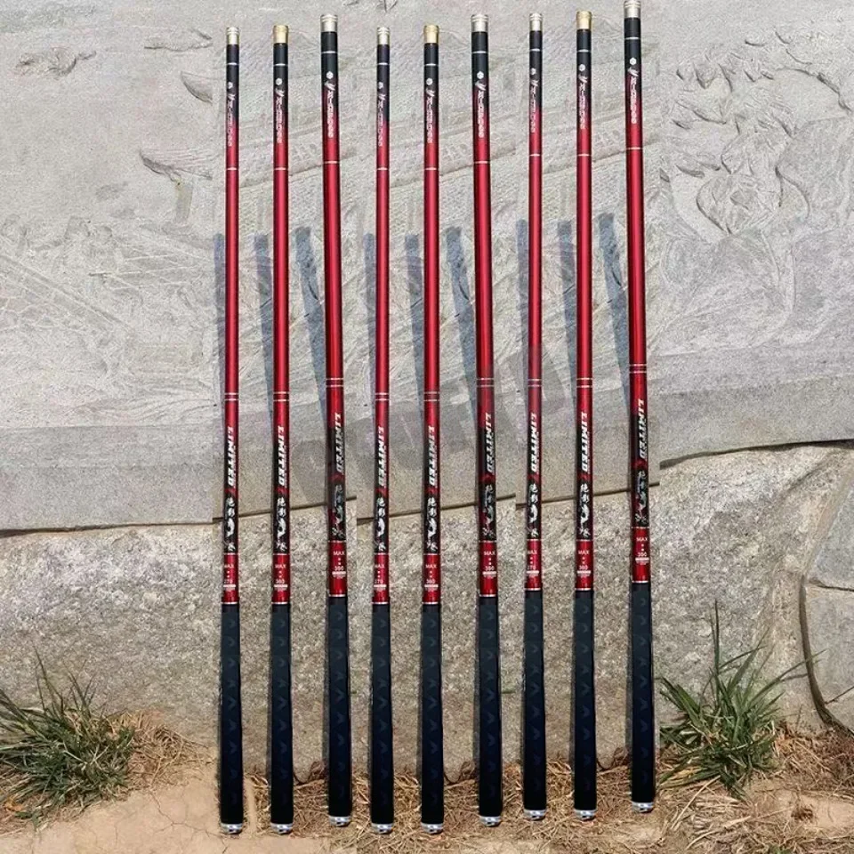 Caña de pescar telescópica de 2,7 M/4,5 M/5,4 M/6,3 M/7,2 M/8M/10M, depósito de carbono, caña de pescar para estanque, caña de pescar de mano de fibra dura súper ligera