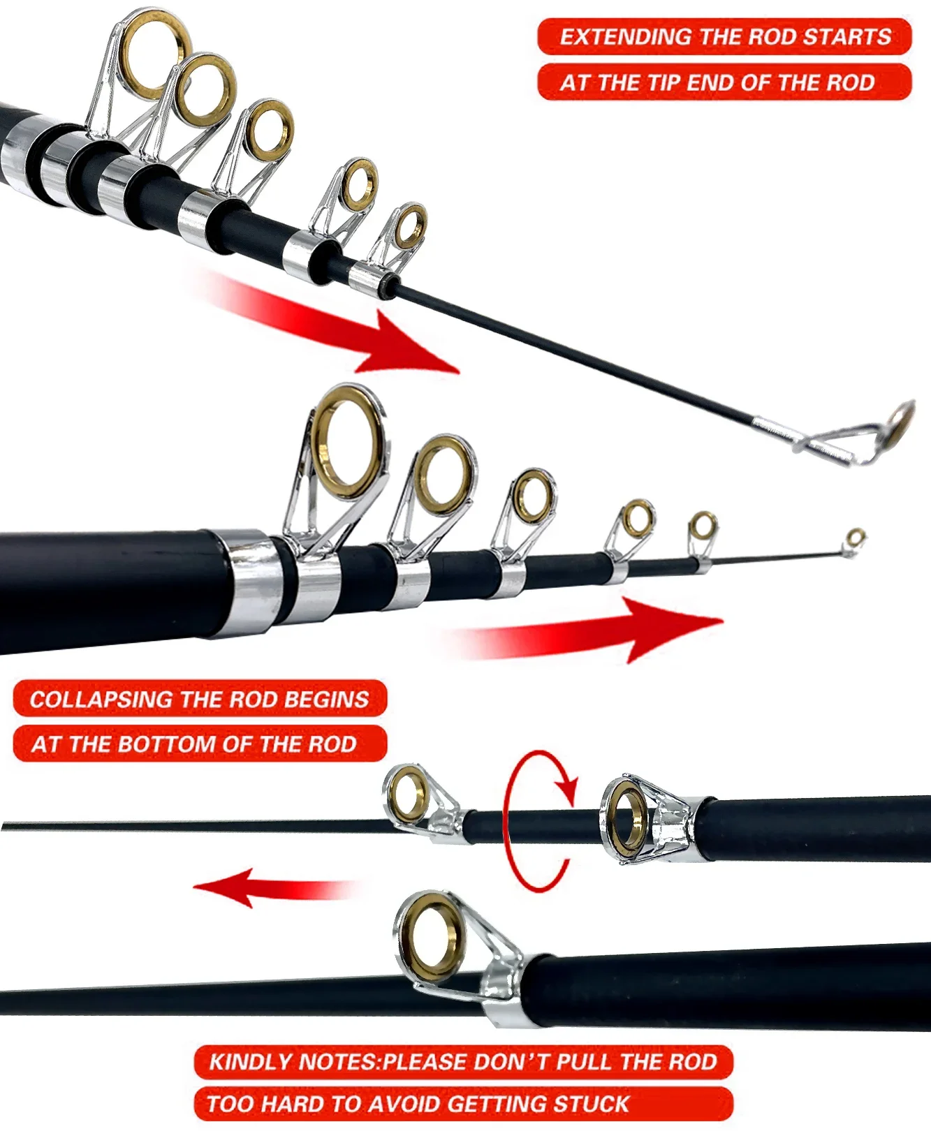 Caña de pescar telescópica 2.1/2.4/2.7/3.0/3.6m Caña de surf de viaje de carbono Spinning Power Beach River Caña de pescar de lanzamiento de distancia