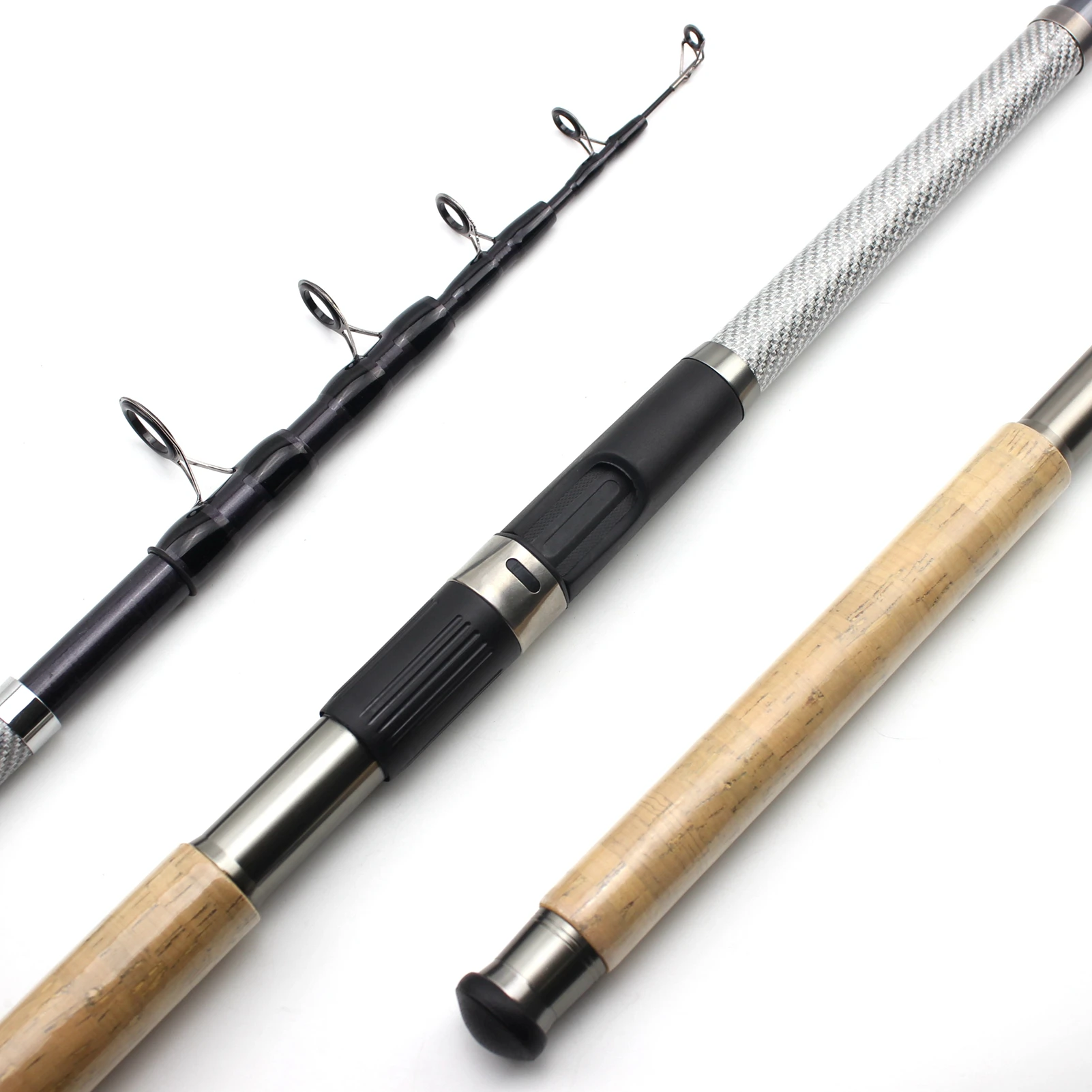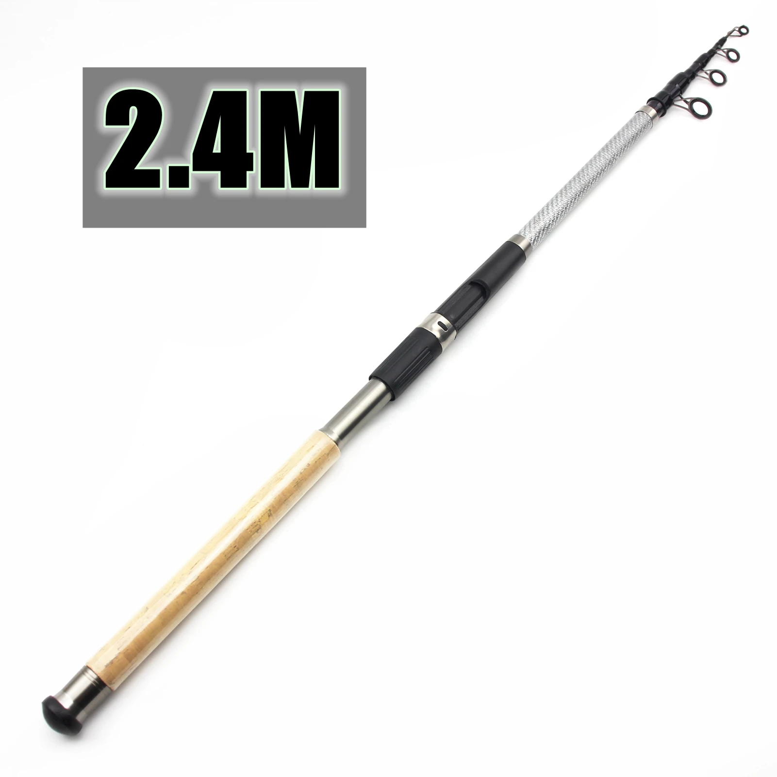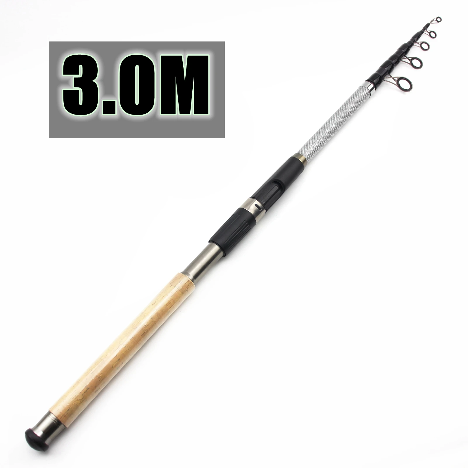 Caña de pescar telescópica de 2,1 m, 2,4 m, 2,7 m, 3,0 m, mango de madera, caña giratoria, caña de pescar Extra pesada para carpa, caña de playa para surfear en el mar