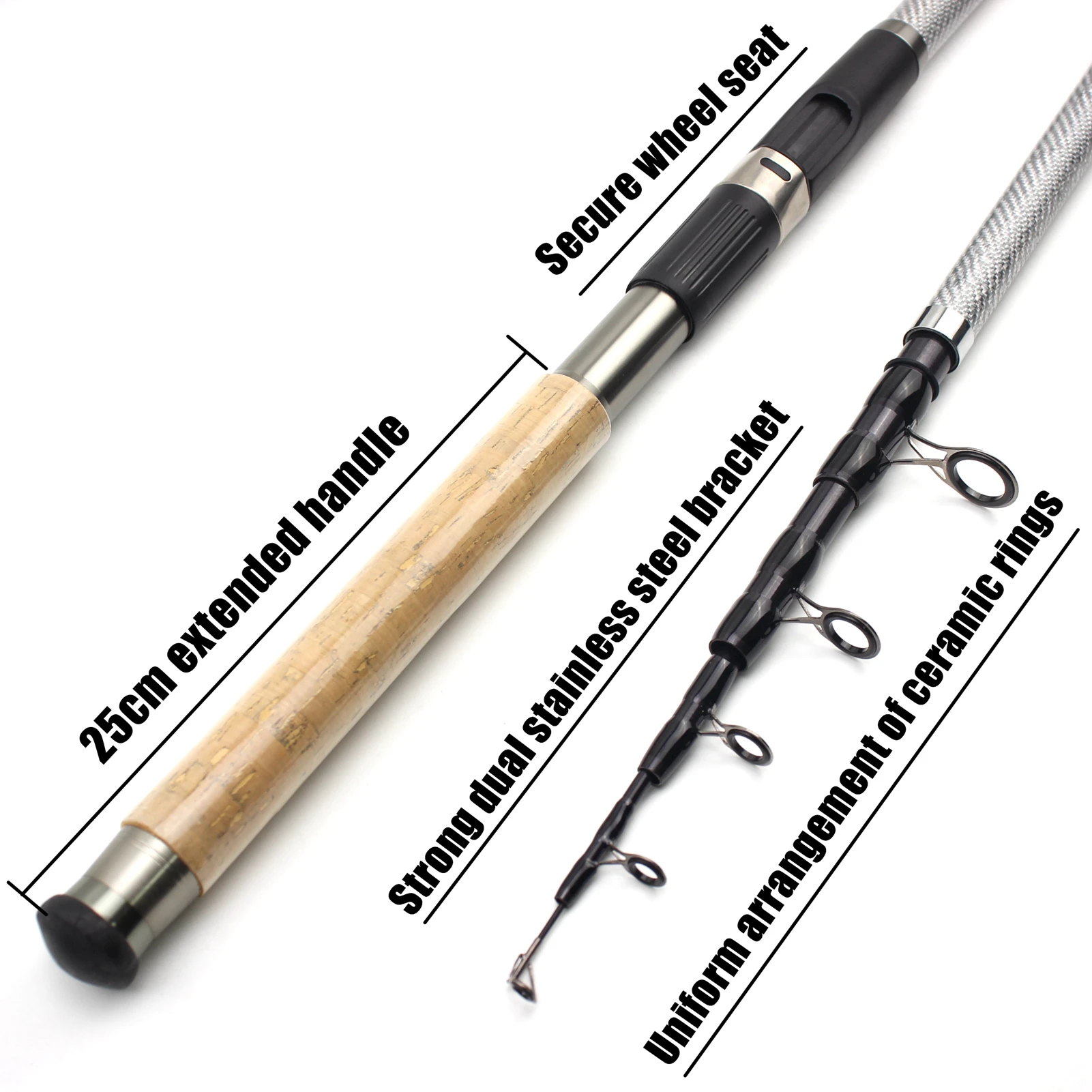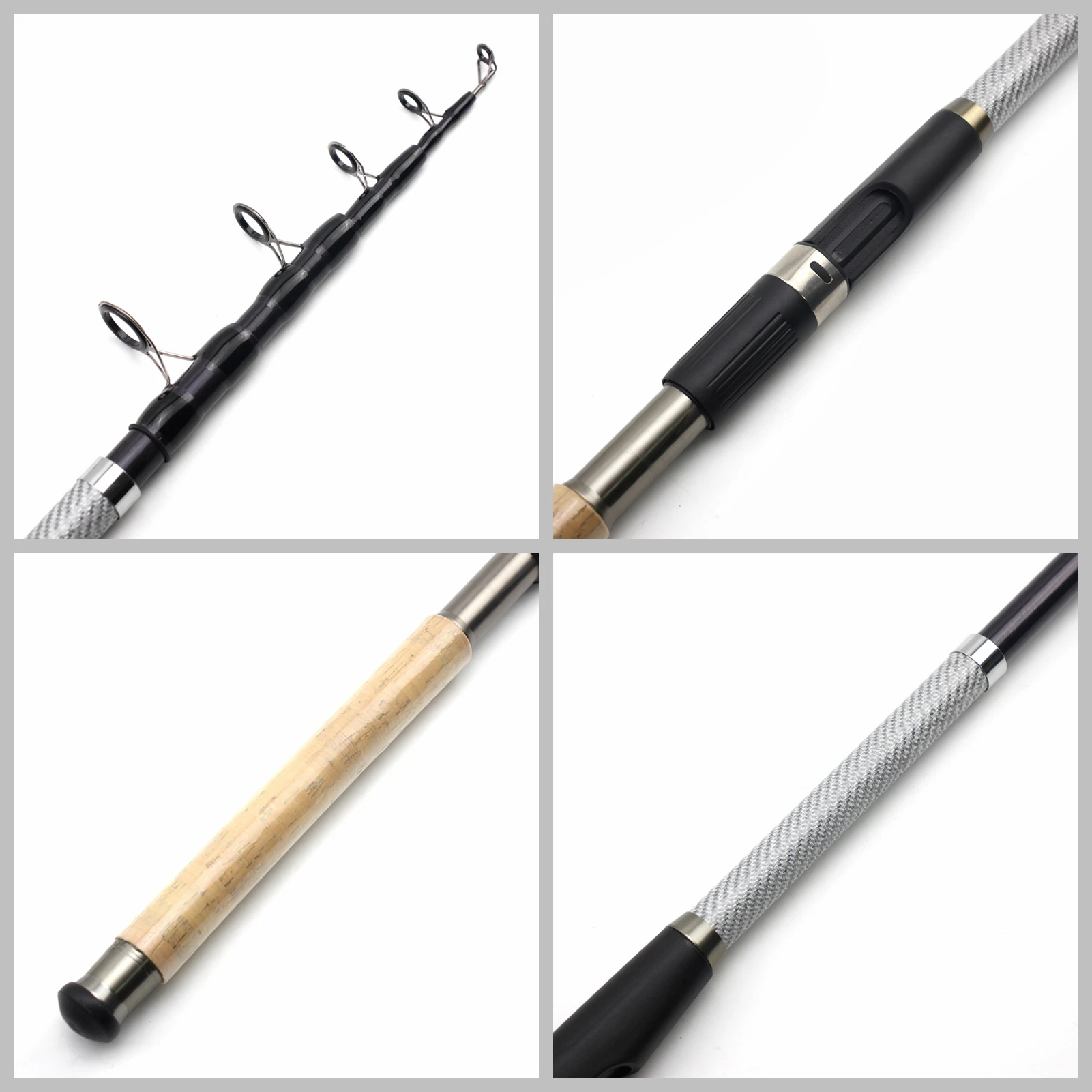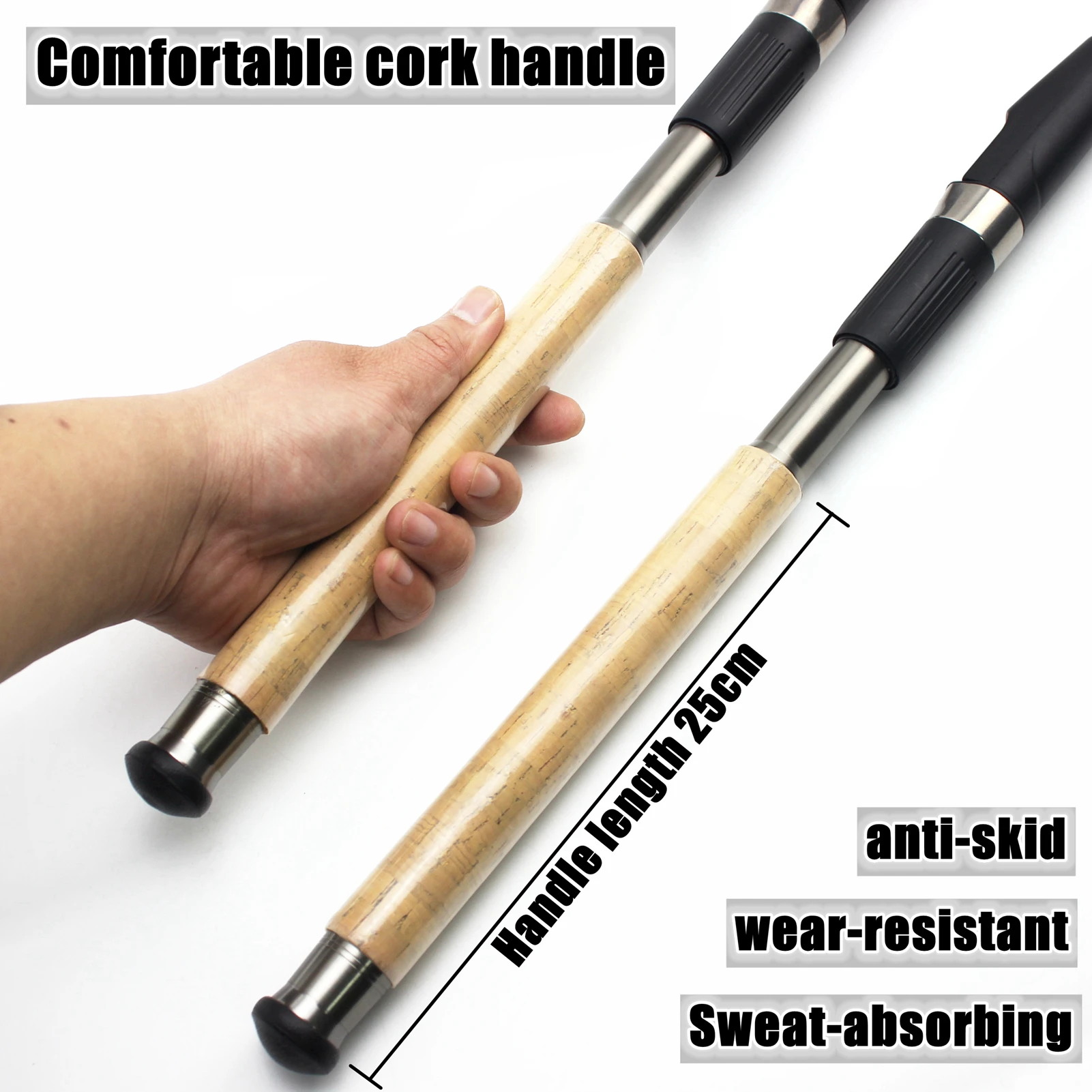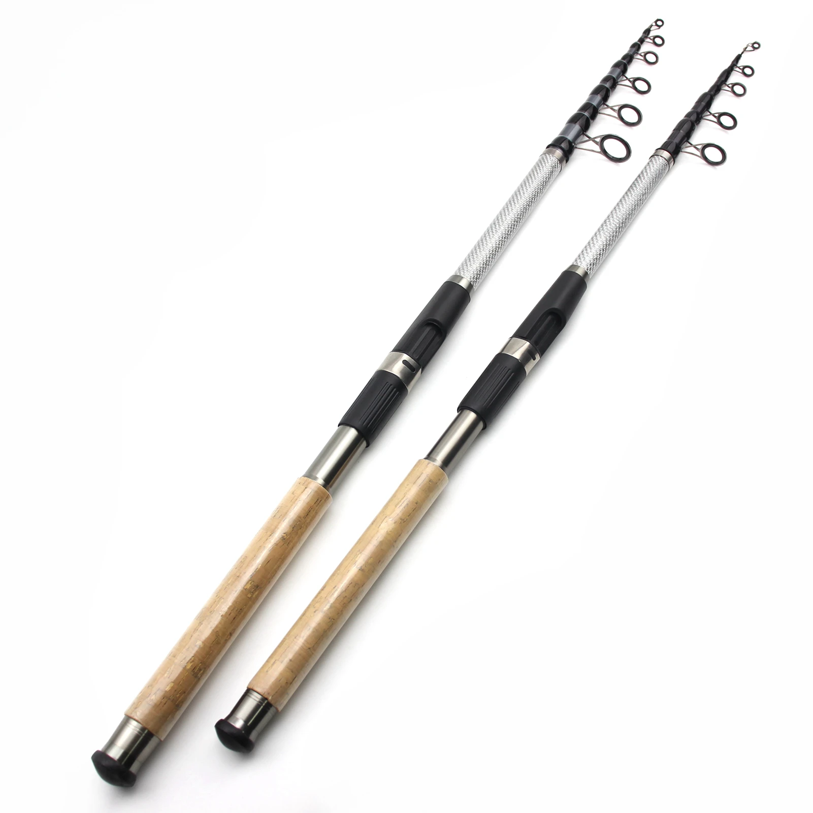 Caña de pescar telescópica de 2,1 m, 2,4 m, 2,7 m, 3,0 m, mango de madera, caña giratoria, caña de pescar Extra pesada para carpa, caña de playa para surfear en el mar