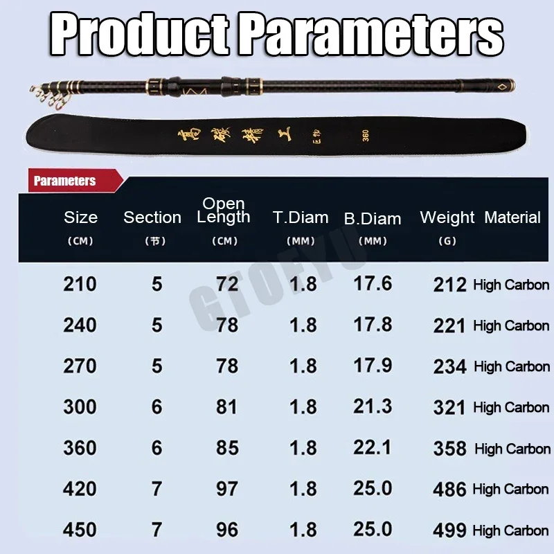 Señuelo: 10-250 g, Longitud: 2,54 M, Prueba: 20 kg arriba