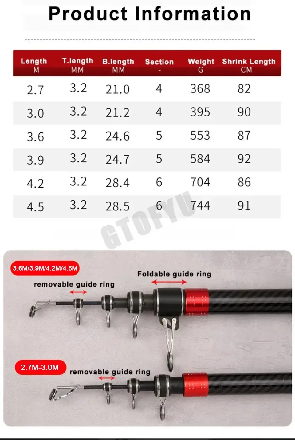 Señuelo: 10-300 g, Longitud: 1-2,5 M, Prueba: 20 kg arriba