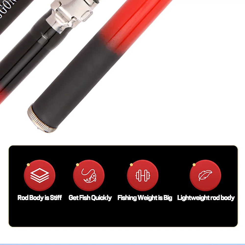 Caña de pescar telescópica de 2.7/3.6/4.5/5.4/6.3 M, caña de pescar de viaje de alto carbono, potencia de Spinning, caña de Baitcasting de lanzamiento de distancia de 10-50gPresentamos nuestra caña de pescar en roca de alta calidad fabricada con fibra de carbono de primera calidad, ¡perfecta para todas tus aventuras de pesca!Con su diseño giratorio telescópico, esta caña de pescar viene en una variedad de tamaños: 2,7 M, 3,6 M, 4,5 M, 5,4 M y 6,3 M, lo que la hace ideal para usar en diversos escenarios, incluidos estanques de embalse, océanos y pesca en roca..