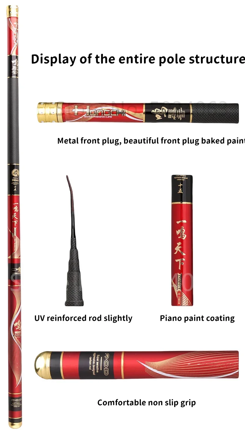 Caña de flujo telescópica 2.7M/3.6M/3.9M/4.5M/5.4M/6,3M, estanque de depósito, caña de pescar de carbono, caña de pescar manual de fibra dura súper ligera