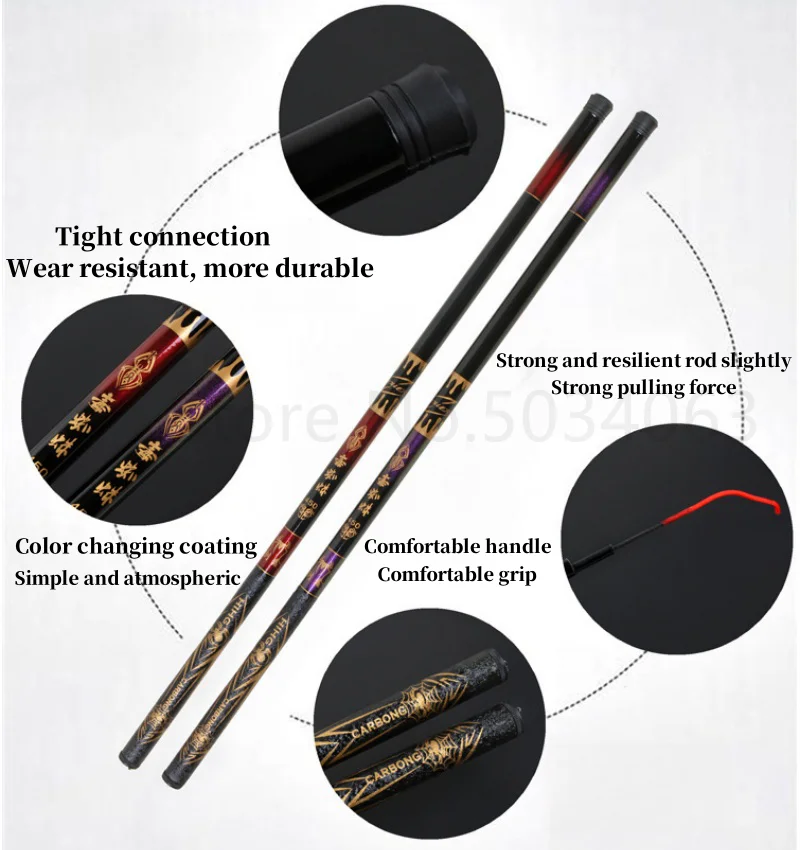 Caña de pescar telescópica de 2,7 M 3,6 M 4,5 M 5,4 M 6,3 M 7,2 M caña de pescar de carbono caña de pescar de mano de fibra dura súper ligera