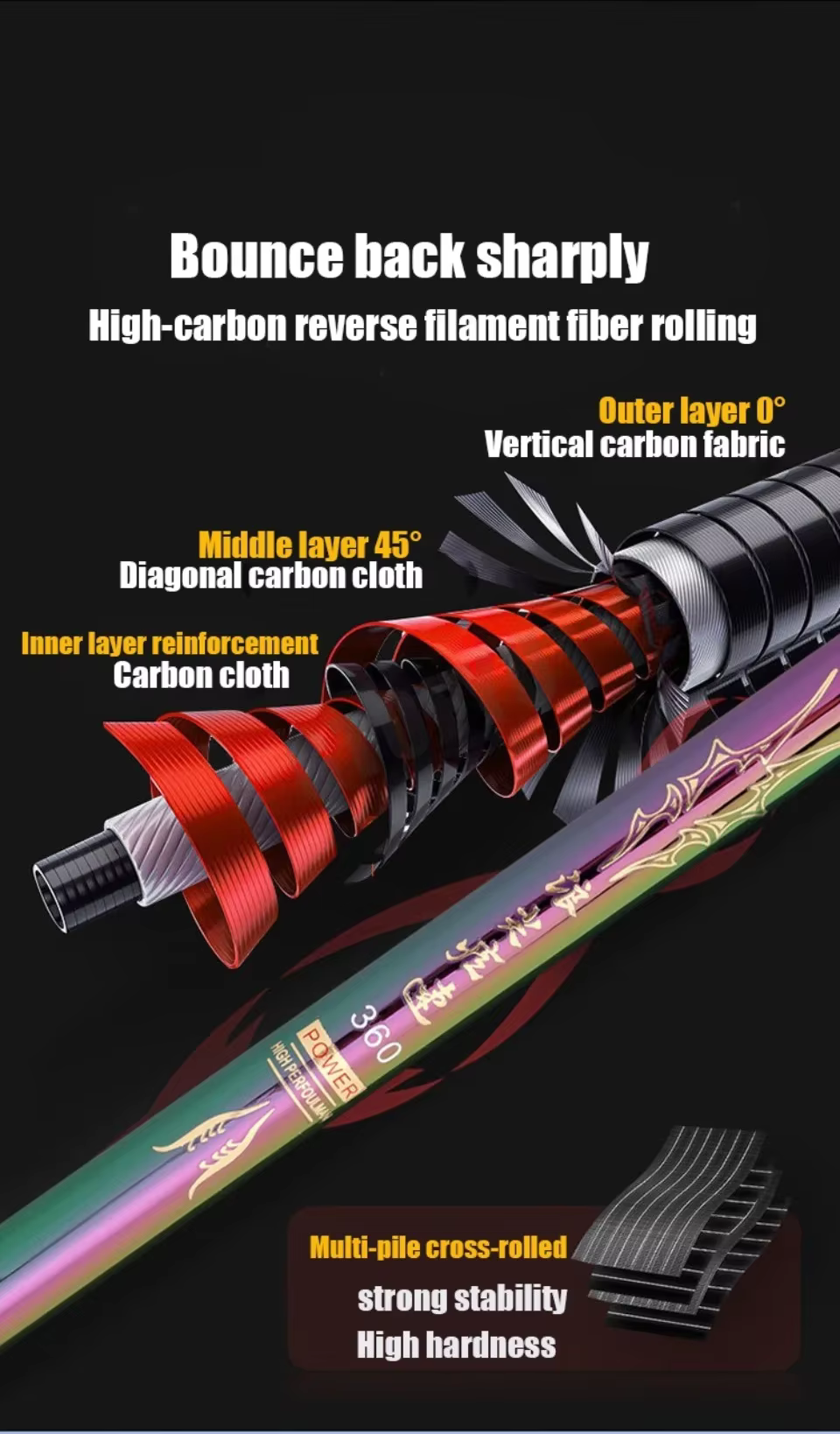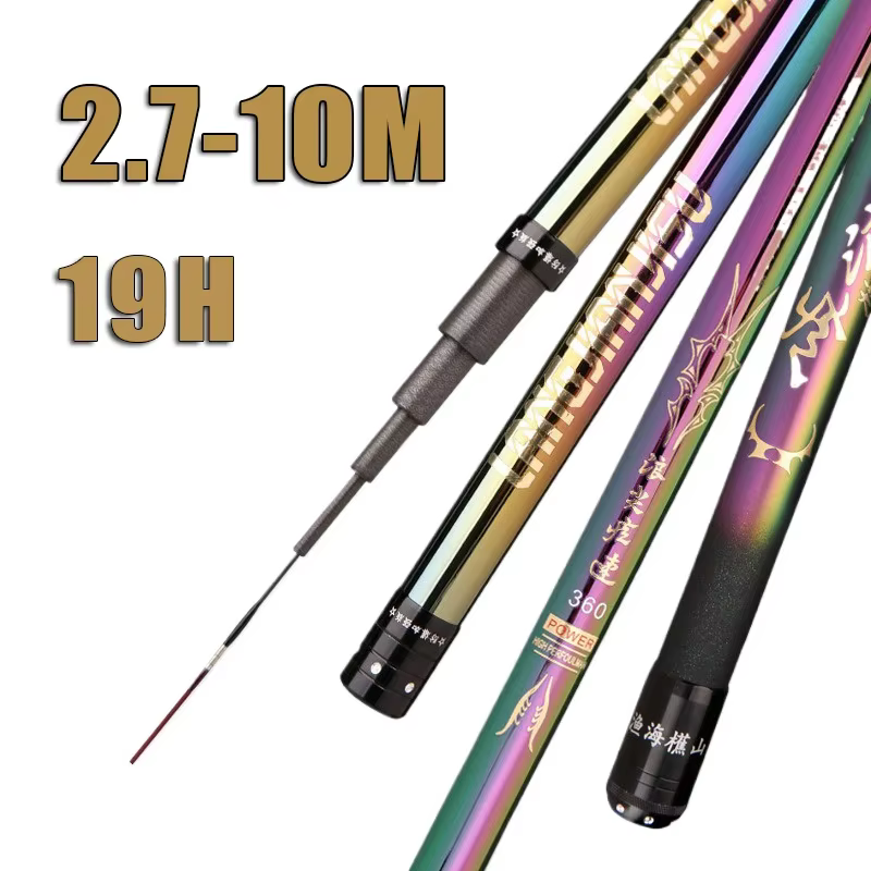 Caña de pescar telescópica de 2,7 M/4,5 M/5,4 M/6,3 M/7,2 M/8M/10M, depósito de carbono, caña de pescar para estanque, caña de pescar de mano de fibra dura súper ligera