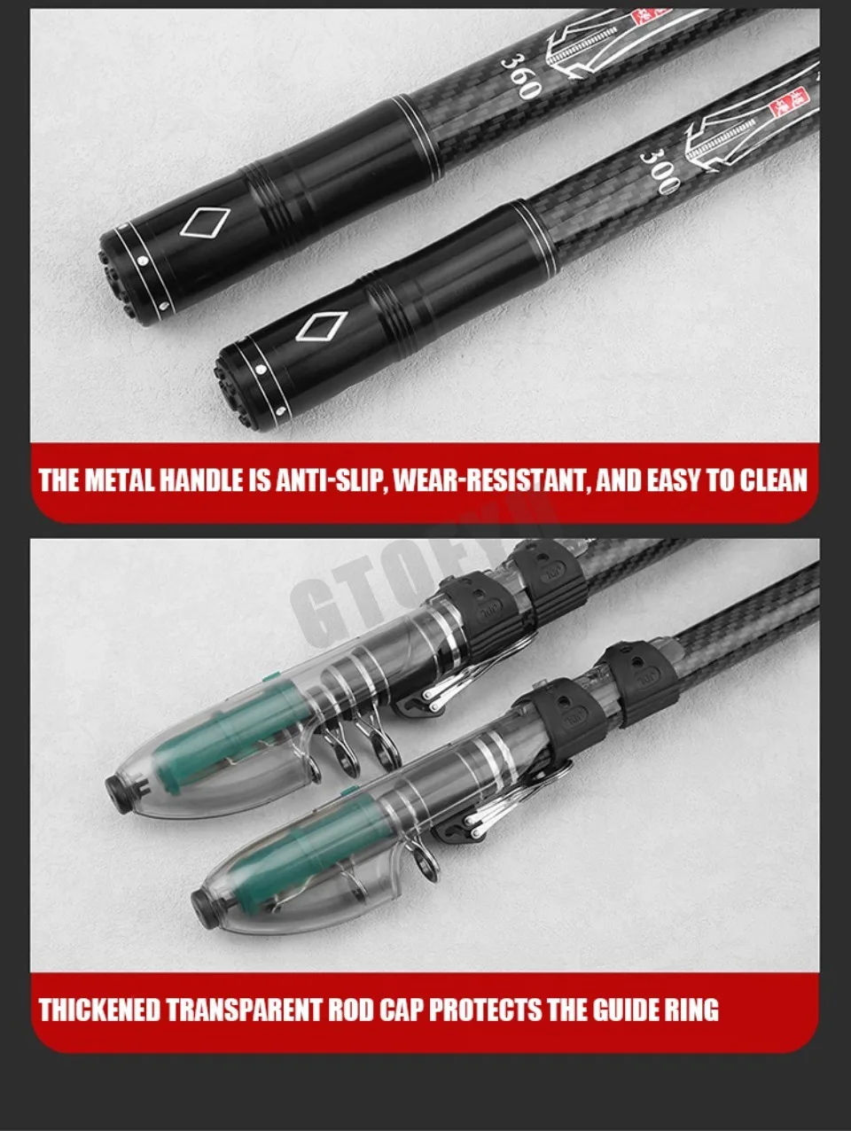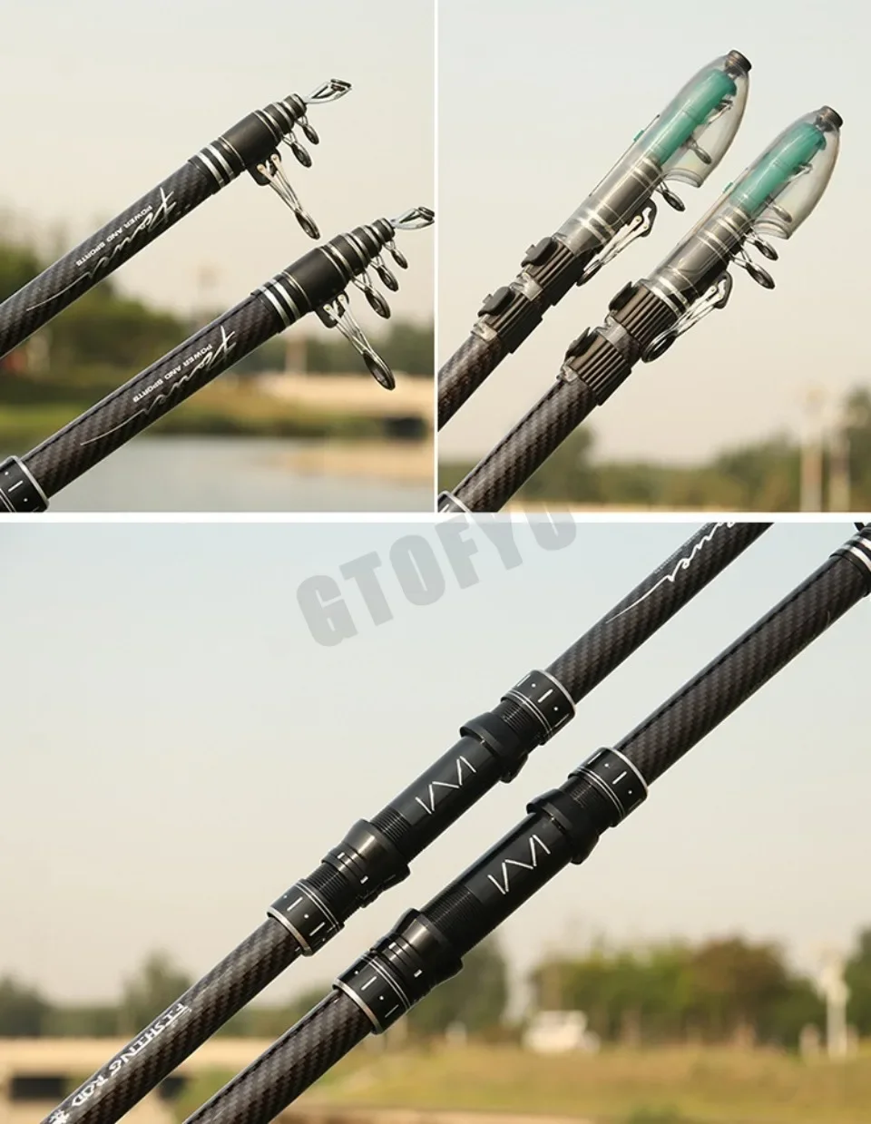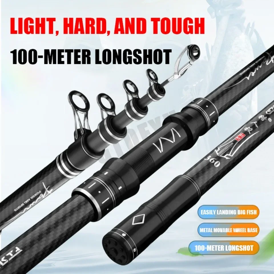 Caña de pescar telescópica de 3,0 M-4,5 M, caña de pescar giratoria portátil de carbono para barco, agua salada, agua dulce, surfcasting, caña de Baitcasting
