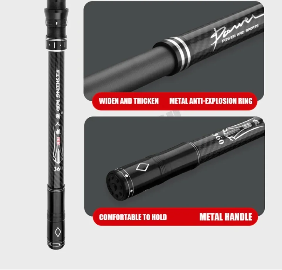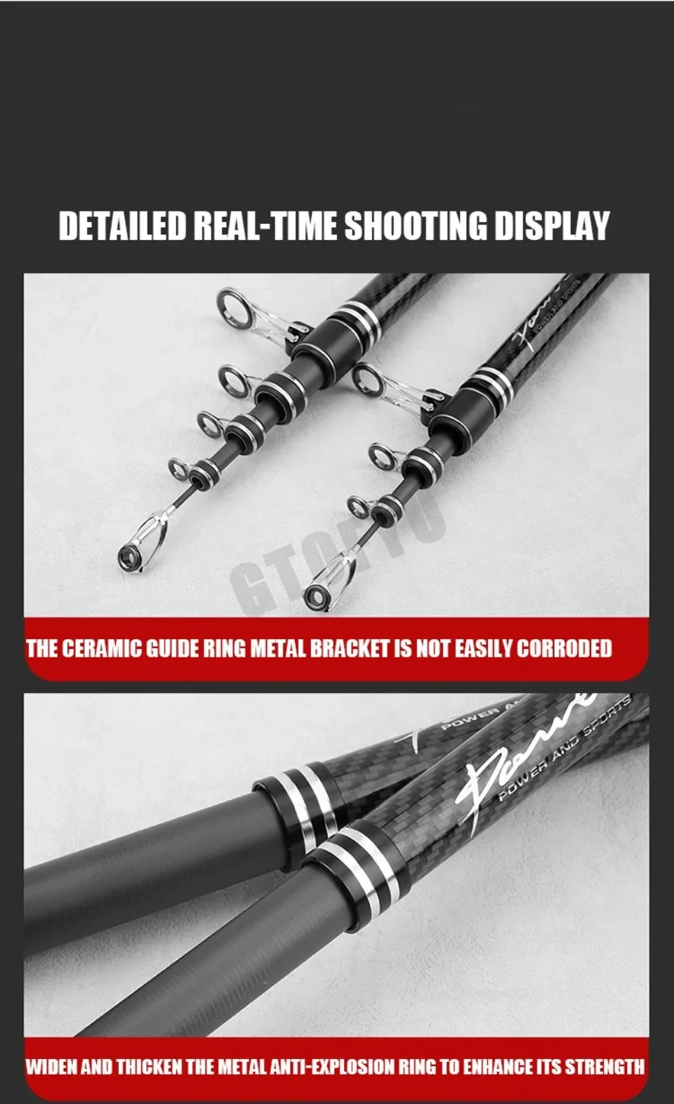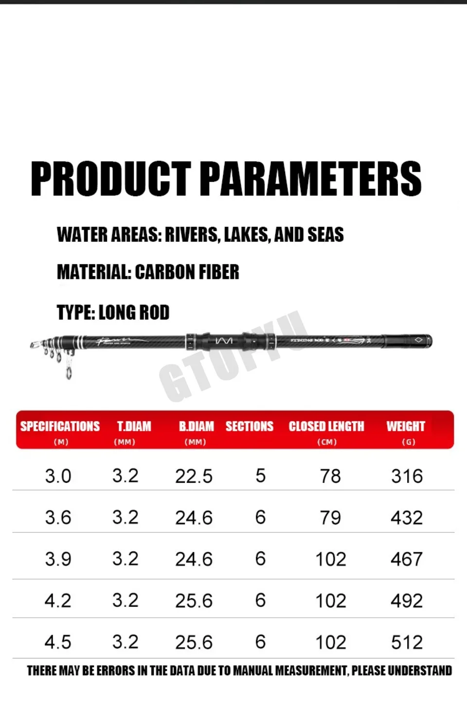 Caña de pescar telescópica de 3,0 M-4,5 M, caña de pescar giratoria portátil de carbono para barco, agua salada, agua dulce, surfcasting, caña de Baitcasting
