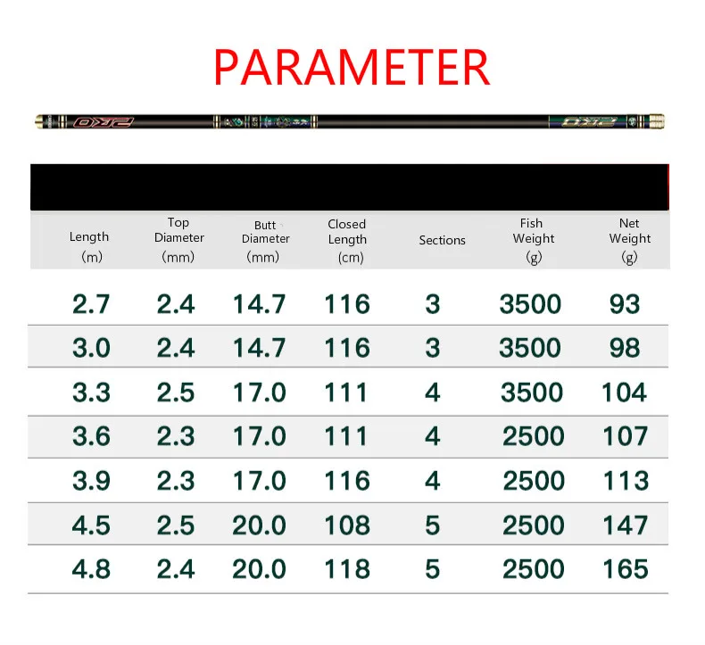Longitud: 2,7-4,8 m Longitud cerrada: 111/116/108 cm