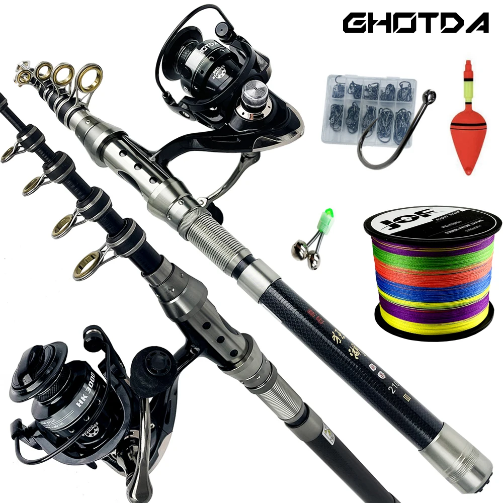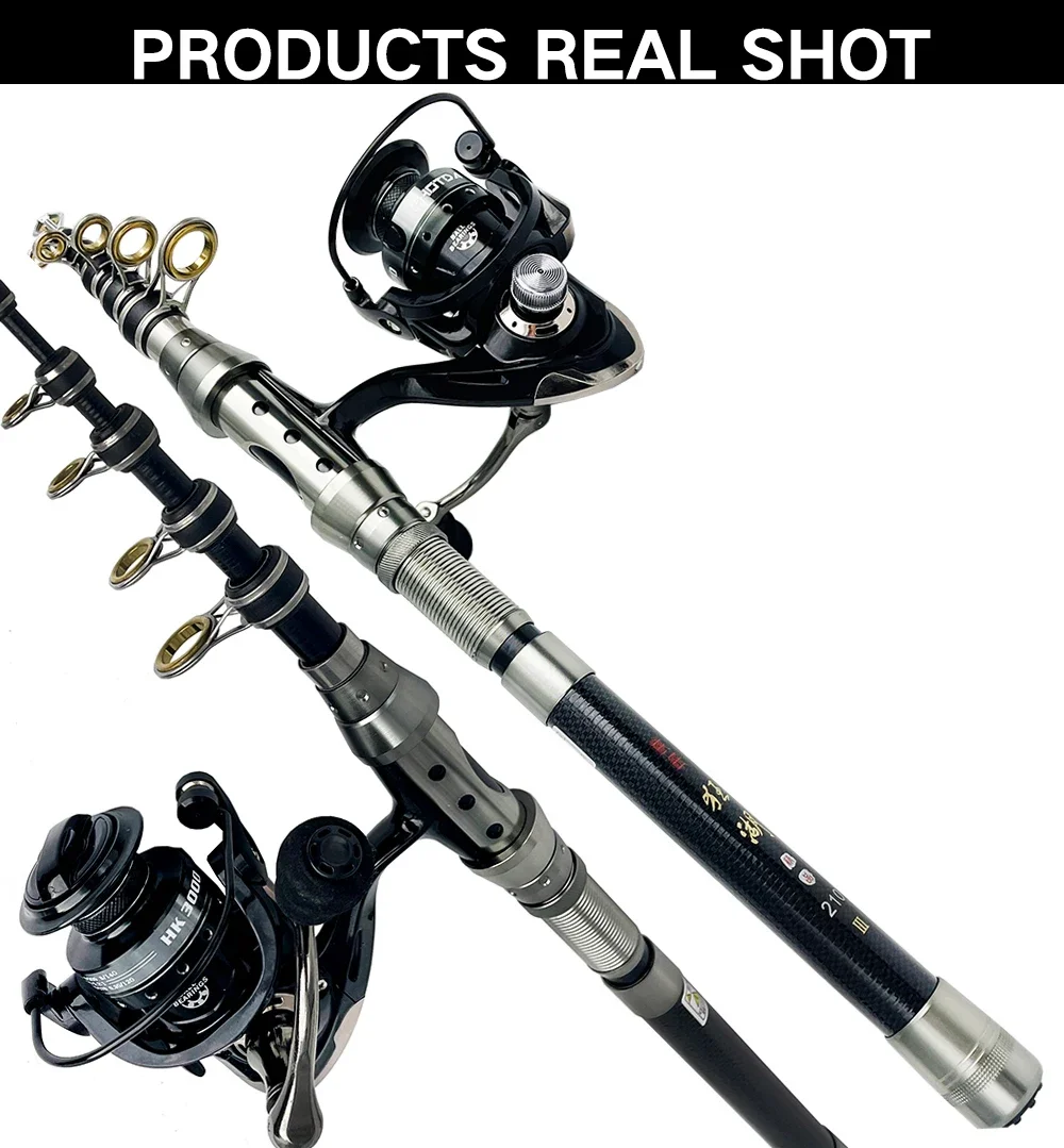 Mar barco carpa caña de pescar Combo 1,5-2,4 metros carbono + aleación telescópica caña de pescar 2000/3000 carrete completo aparejos de pescaVarilla 1,5 M + Carrete HK2000