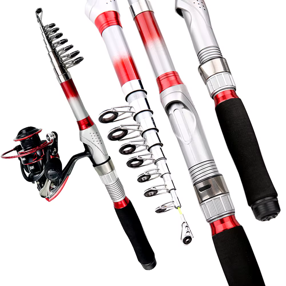 3. Caña de pescar de longitud ajustable para situaciones donde el equipo de pesca de tamaño completo es inconveniente.