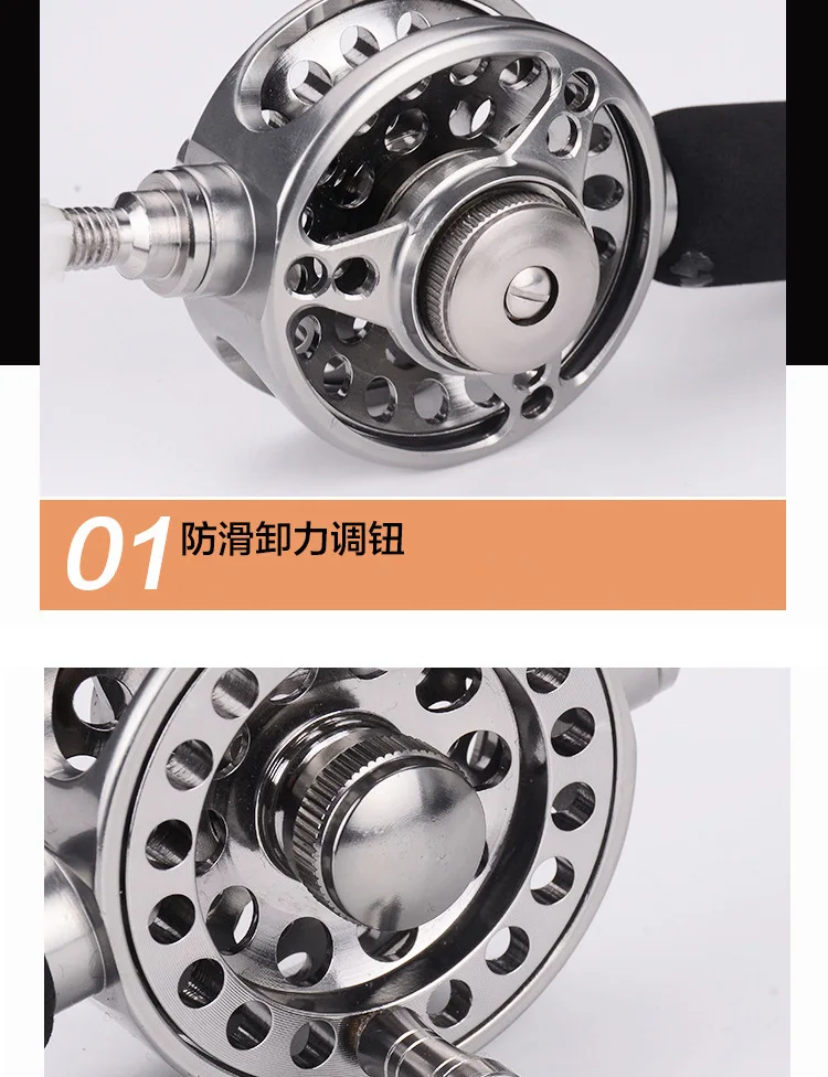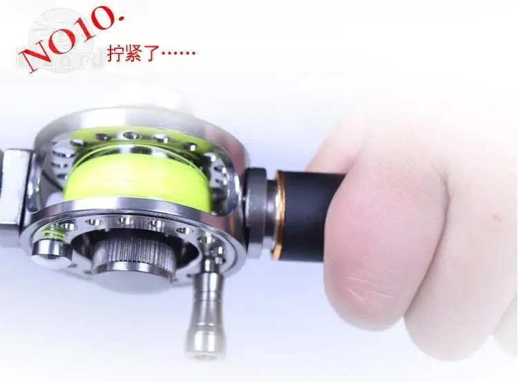 7. Afloje un poco la rueda al pescar, gírela hacia adelante y hacia atrás para sentir la fuerza de frenado. Compruebe esto cada vez que esté junto al río después de lanzar el cebo. Compruebe si el carrete puede liberar el hilo libremente, a veces después de apretar demasiado la perilla, la Rueda de la línea puede atascarse.