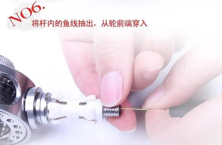 4. No haga ningún nudo en el hilo de PE ni use pegamento, si el diámetro exterior de la punta de la caña de pescar es solo de aproximadamente 1,18mm. La perilla o el pegamento no pueden pasar y romperá la parte superior más delgada de la punta de la caña de pescar.