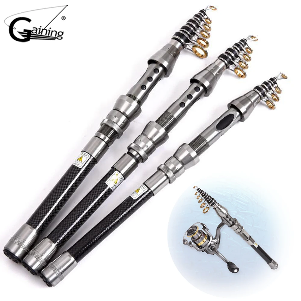 Mini caña de pescar telescópica portátil de fibra de carbono, 1,5-2,4 m, para mar, río, lago, barco, cañas de pescar de alta resistencia