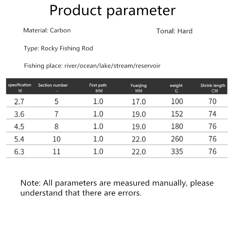 Caña de pescar telescópica de carbono 2,7 m 3,6 m 4,5 m 5,4 m 6,3 m caña de pescar ultraligera en roca caña de pescar giratoria telescópica aparejos de pesca