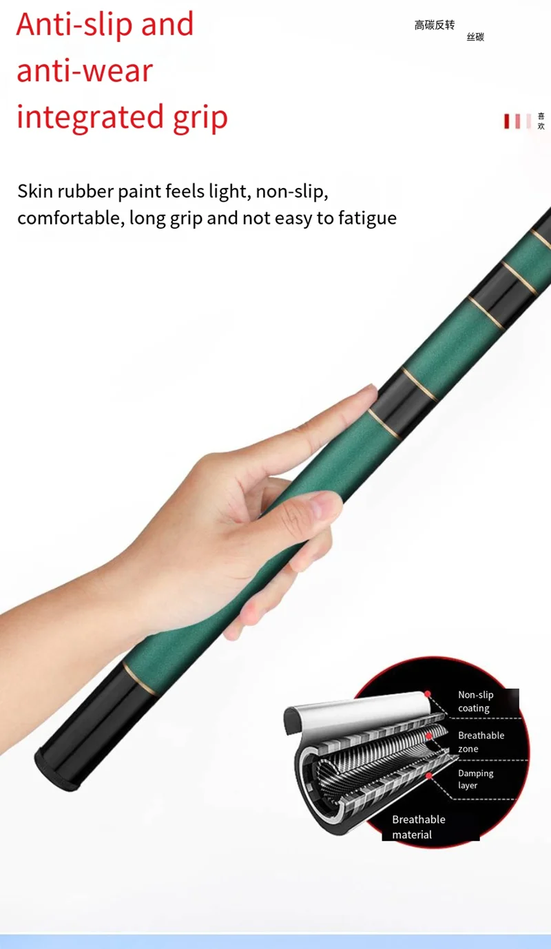 2. Mezcla fibra de carbono de alta densidad y fibra de vidrio para hacer la caña de pescar dura y duradera.