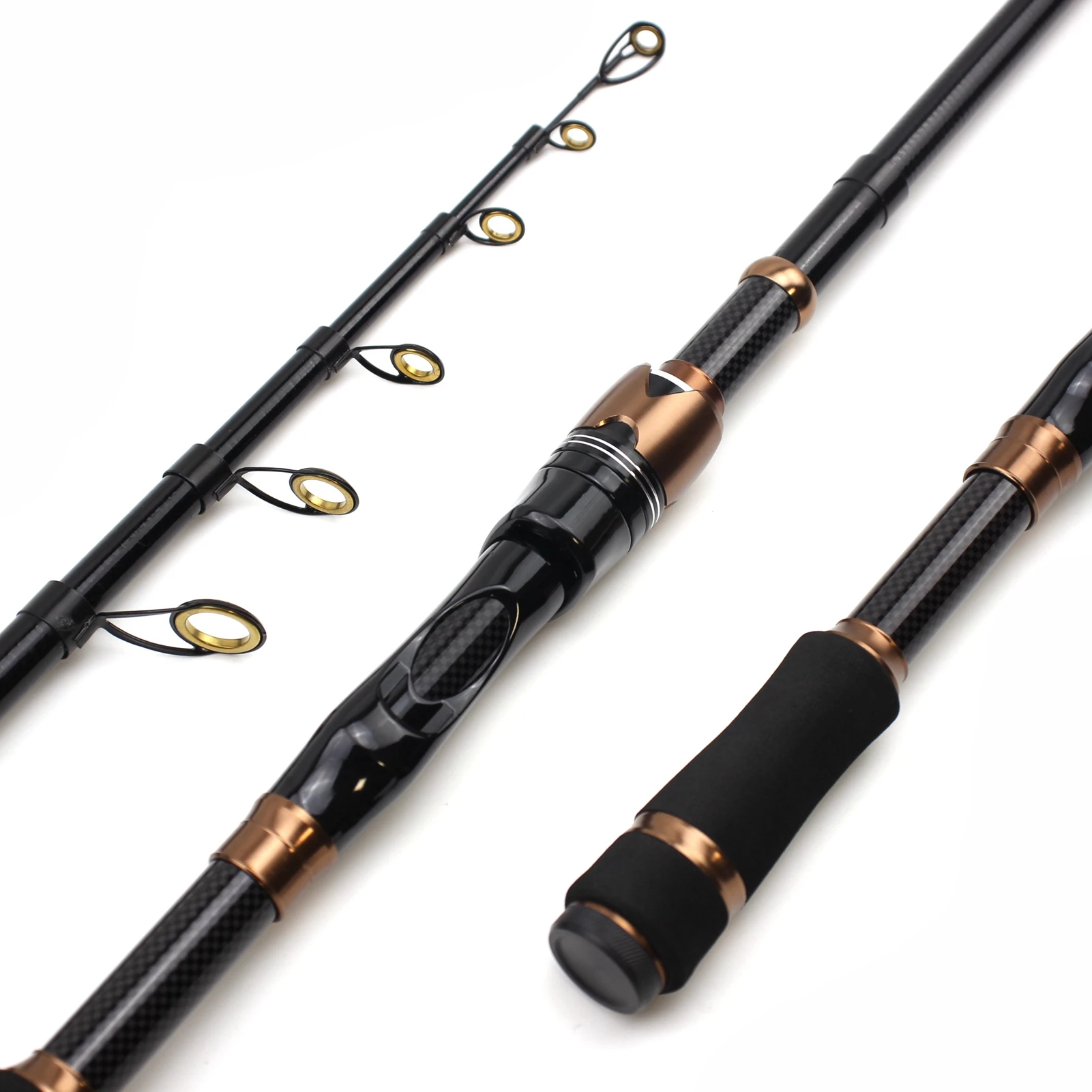 2. Caña de pescar ultraligera de larga distancia, el peso de la caña de pescar es de 170g. El anillo guía de cerámica de color de alta calidad no dañará la línea de pesca. Mango largo antideslizante de EVA, buena sensación en la mano, asiento de carrete tridimensional, novedoso y de moda.