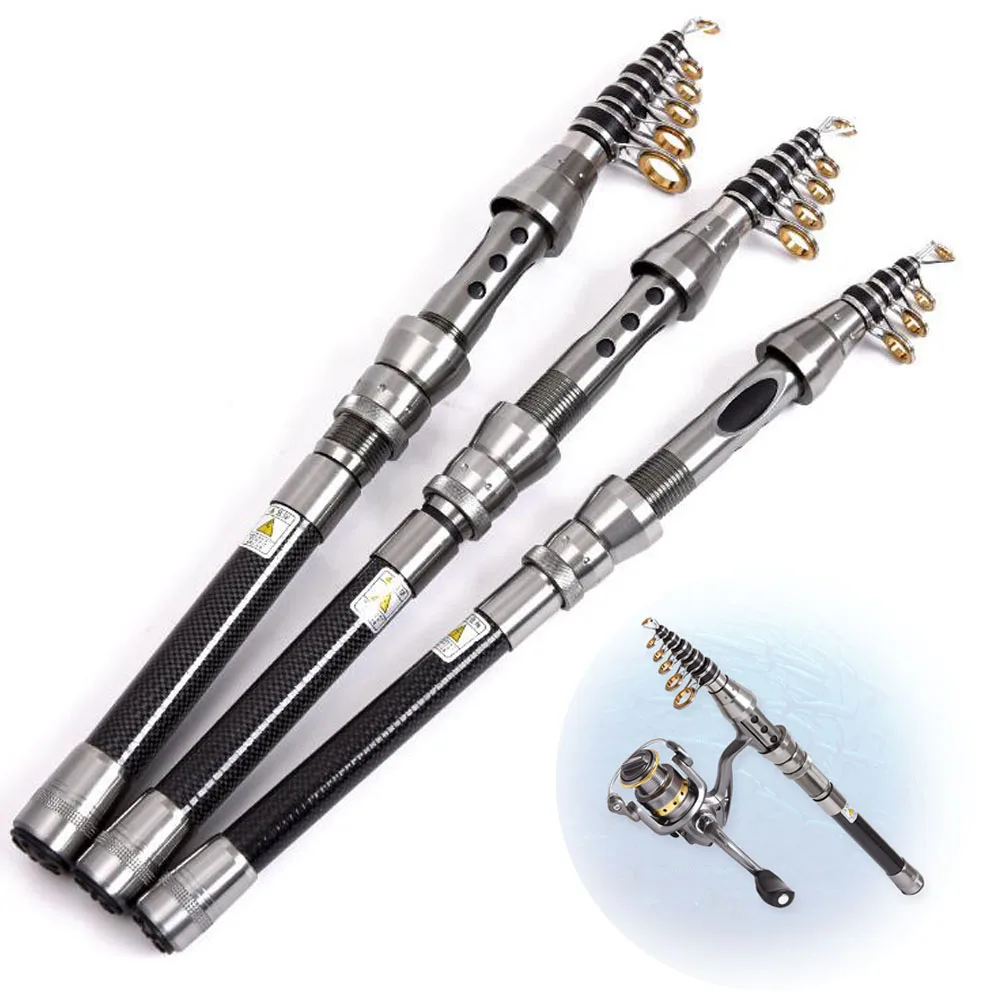 Caña de pescar telescópica de carbono 1,5 m 1,8 m 2,1 m 2,4 m Cañas de pescar giratorias Caña de pescar en roca