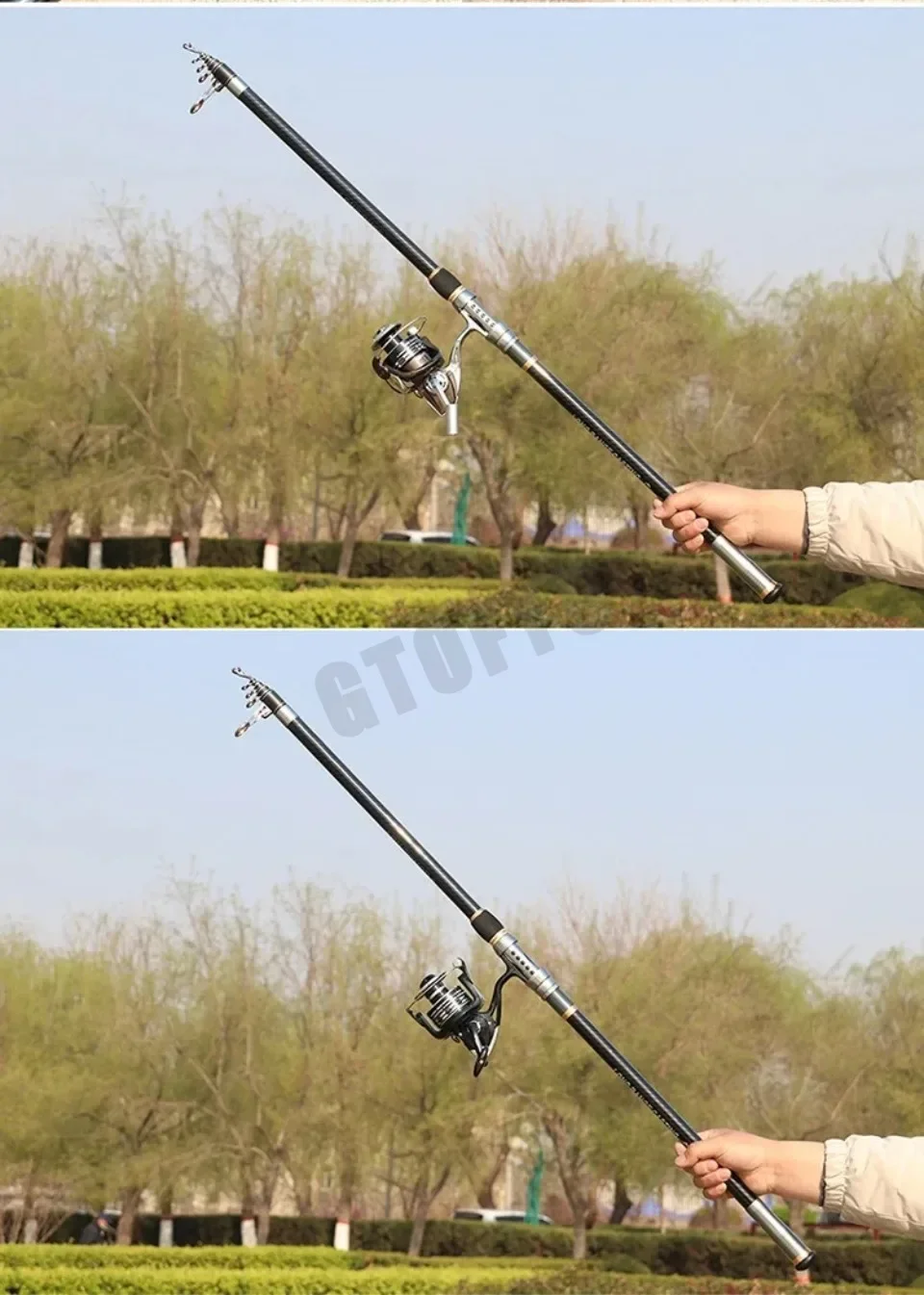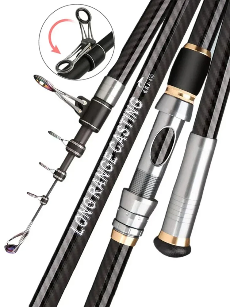 Caña de pescar telescópica de carbono, caña de pescar giratoria portátil para barco, agua salada, agua dulce, Surfcasting, 3,9 M-4,5 M