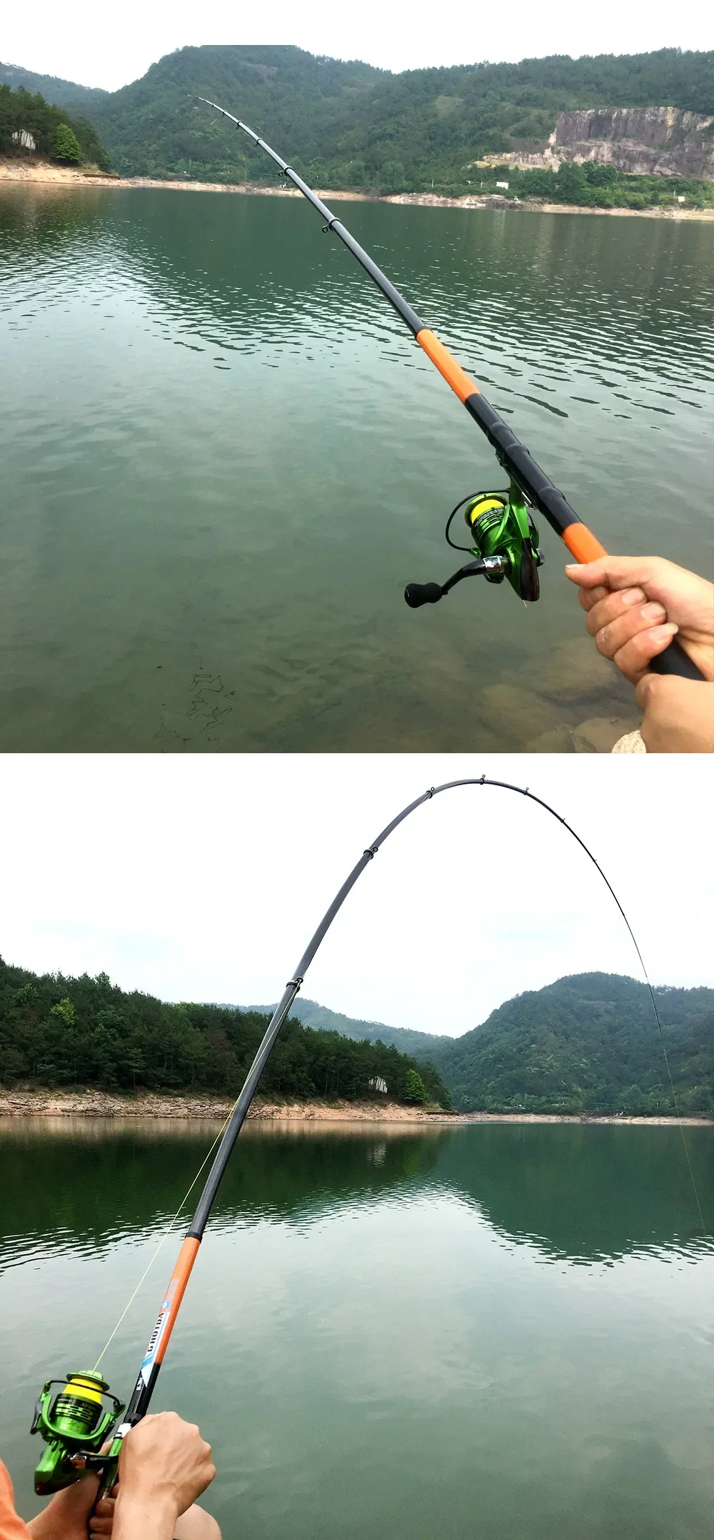 1. Con su diseño giratorio telescópico, esta caña de pescar viene en una gama de tamaños-2,7 M, 3,6 M, 4,5 M, 5,4 M, y 6,3 M, lo que lo hace ideal para su uso en diversos escenarios, incluidos estanques de depósito, océanos y pesca en roca.