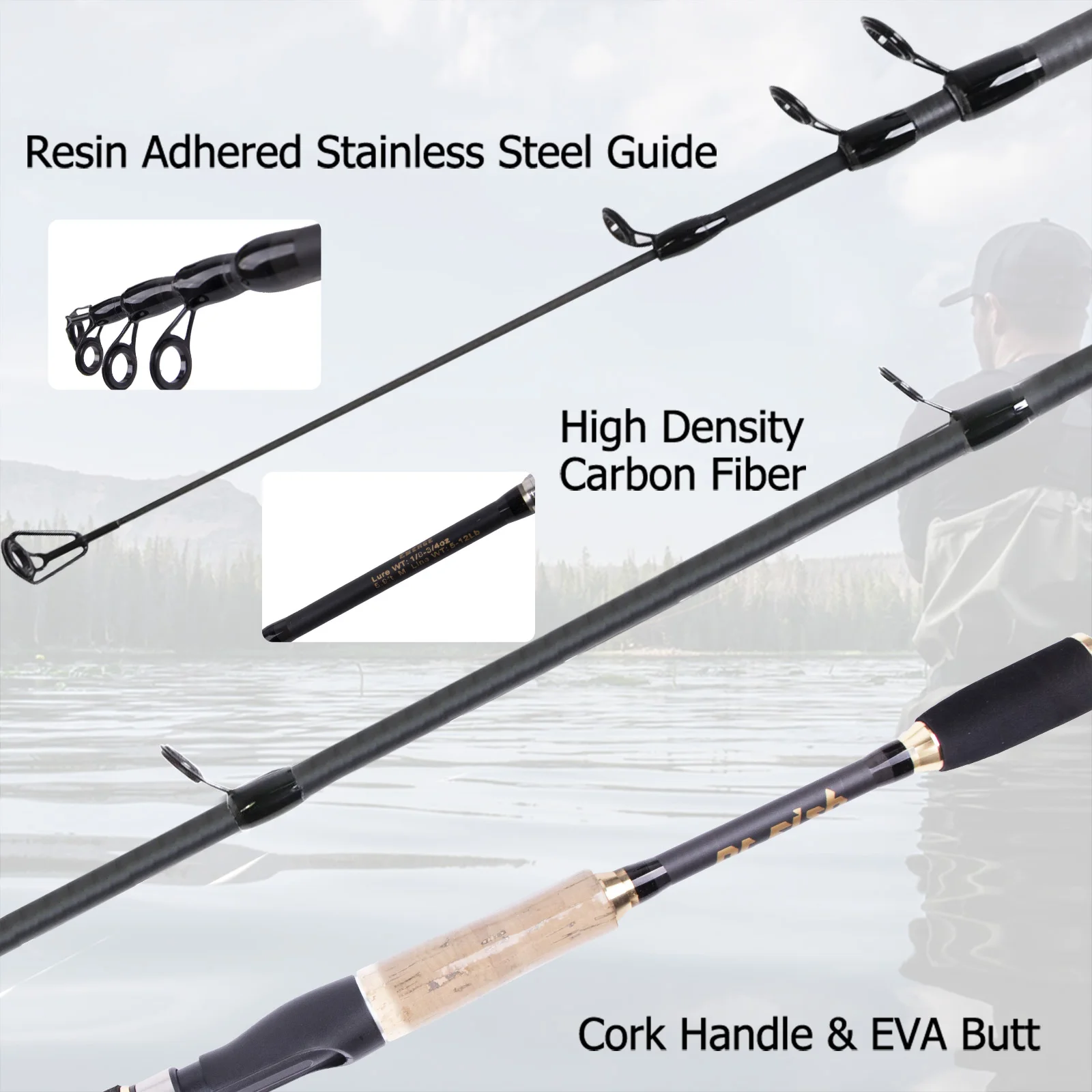 Elasticidad perfecta: esta caña de pescar está hecha con fibra de carbono de alta densidad y componente de fibra de vidrio, maximizando su resistencia y flexibilidad incluso bajo cargas pesadas.