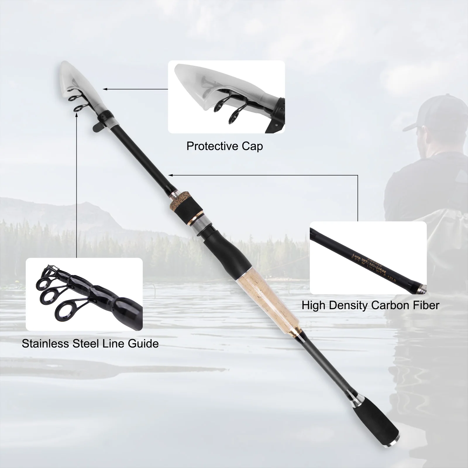 Portátil: esta caña de pescar de viaje se puede instalar fácilmente en su bolsa de aparejos o en su coche. Y es lo suficientemente ligero y adecuado para que sus hijos o familiares pesquen juntos.