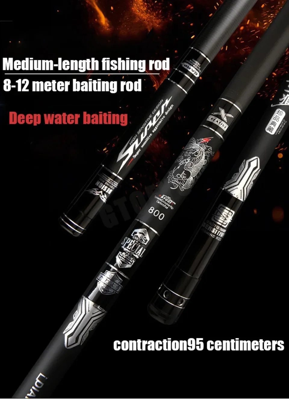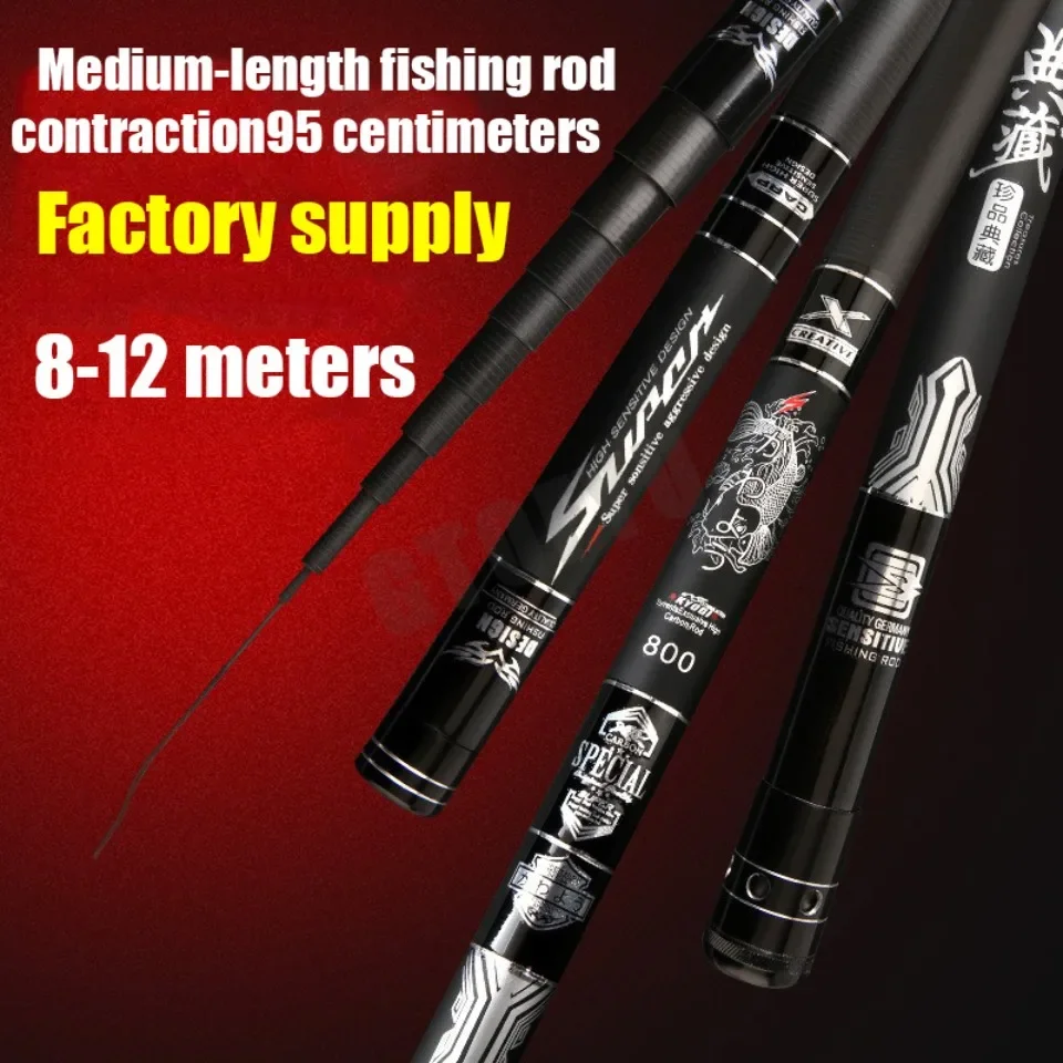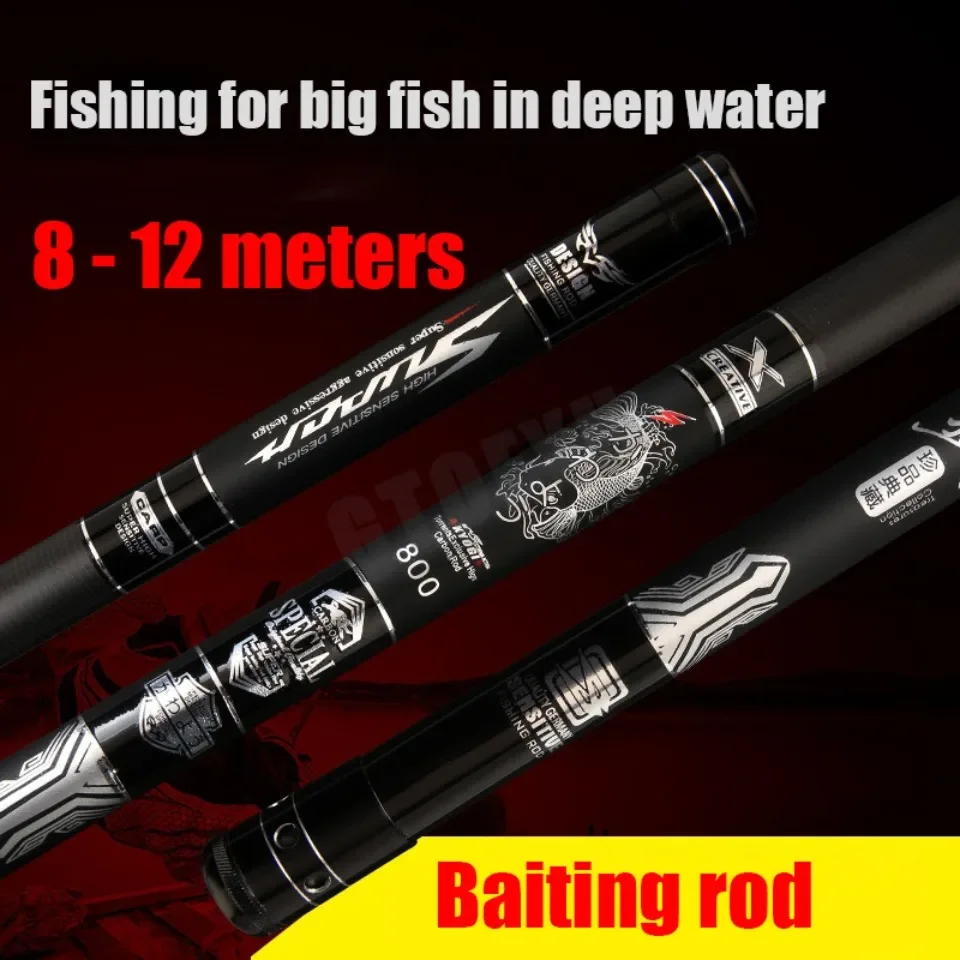 Caña de pescar telescópica para carpa, 8,0/9.0/10/11/12M, caña de pescar telescópica ultraligera portátil de carbono, arrastre máximo de 15Kg, herramientas de pesca