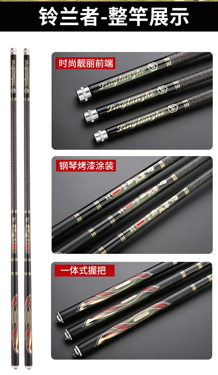 Caña de pescar telescópica para carpa, ultraligera, alimentador de agua dulce, fibra de carbono, 6M, 7M, 8M, 9M, 10M