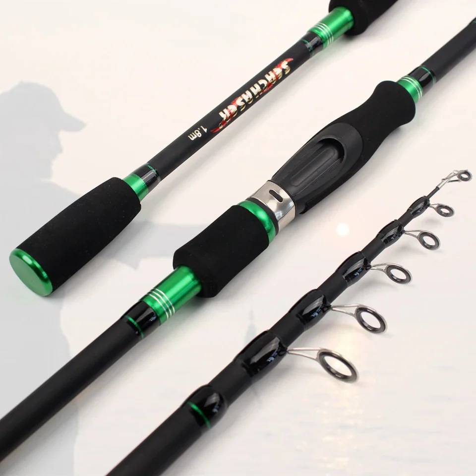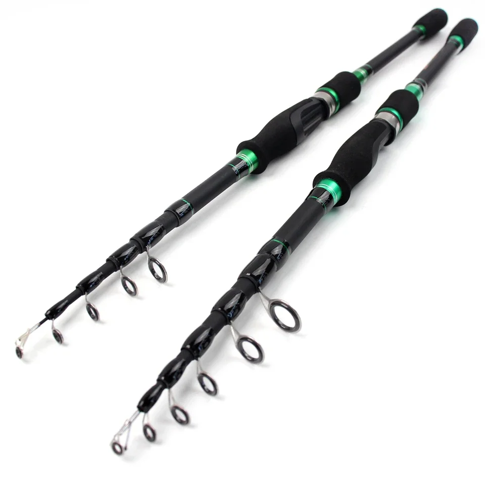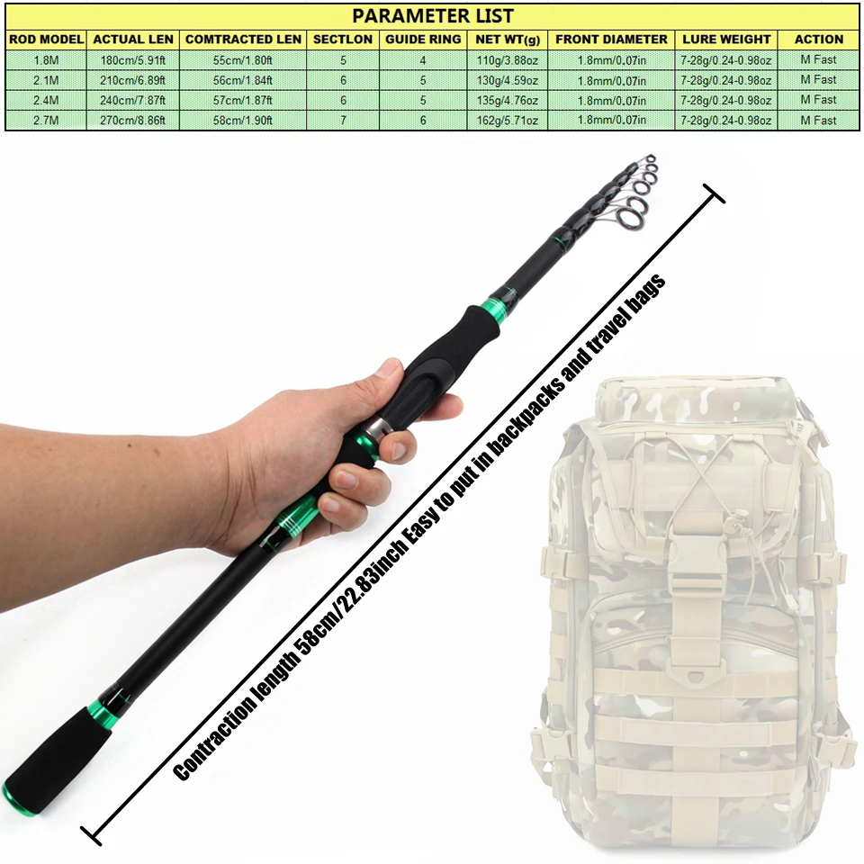 Caña de pescar telescópica duradera: hecha de fibra de carbono de alta densidad, con guías y articulaciones reforzadas, un aparejos de pesca profesionales