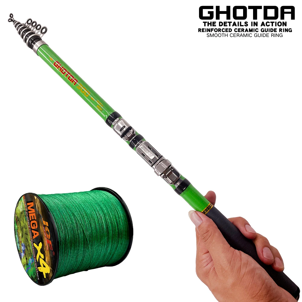 Caña de pescar telescópica en roca Spinning Fly Carp Feeder Carbon 3.0/2.7/2.4/2.1/1.8/1.5M Mini caña de viaje Asiento de carrete de Metal con línea