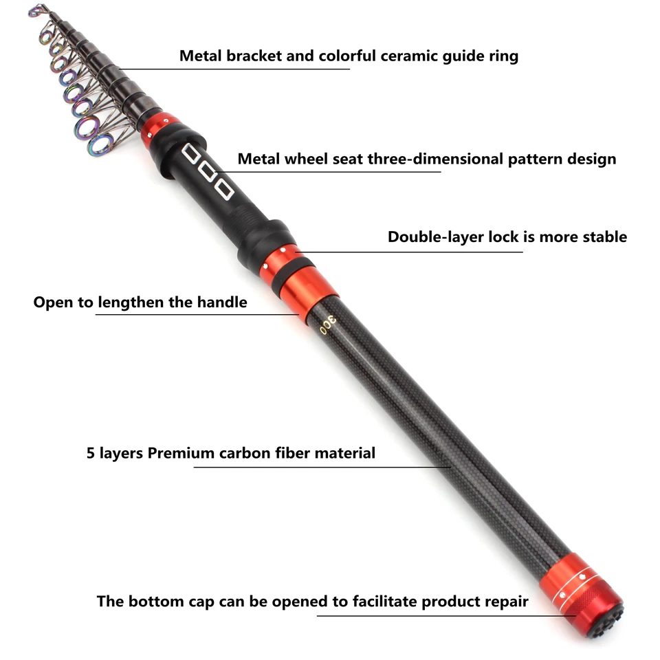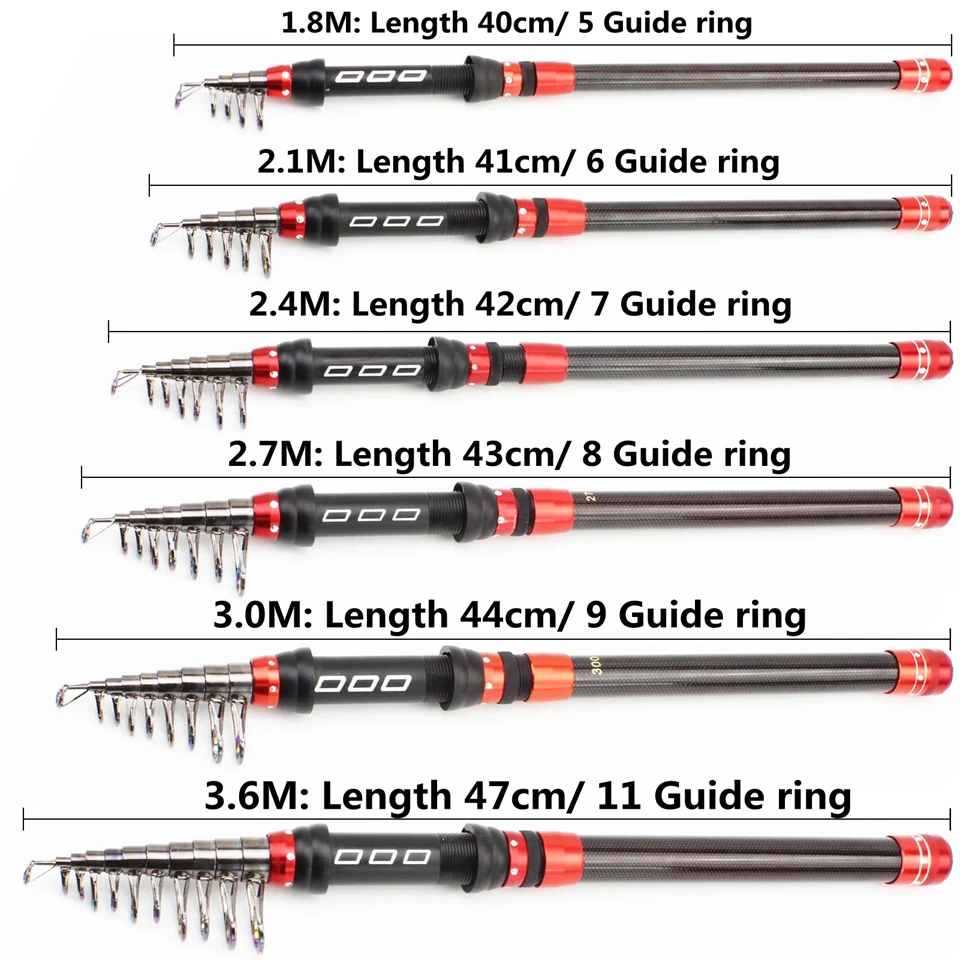 Caña de pescar telescópica de fibra de carbono, accesorio de viaje portátil, para trucha, carpa, lubina, 2,4 m, 2,7 m, 3,0 M, 3,6 m