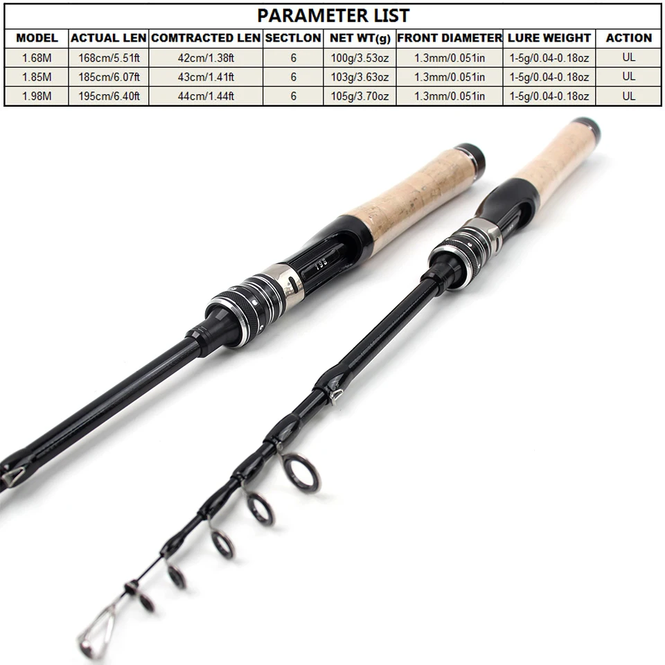· Acción lenta UL precisa: presenta una potencia ultraligera (UL) con un cono de acción lenta.Este diseño es ideal para lanzar señuelos livianos (1,5 g-7 g) y proporciona un excelente control y diversión al pelear peces de caza pequeños.