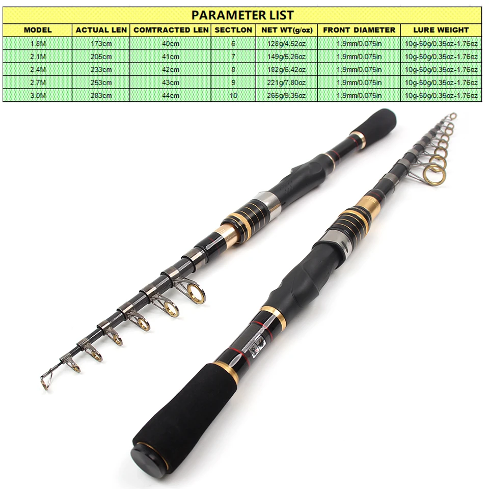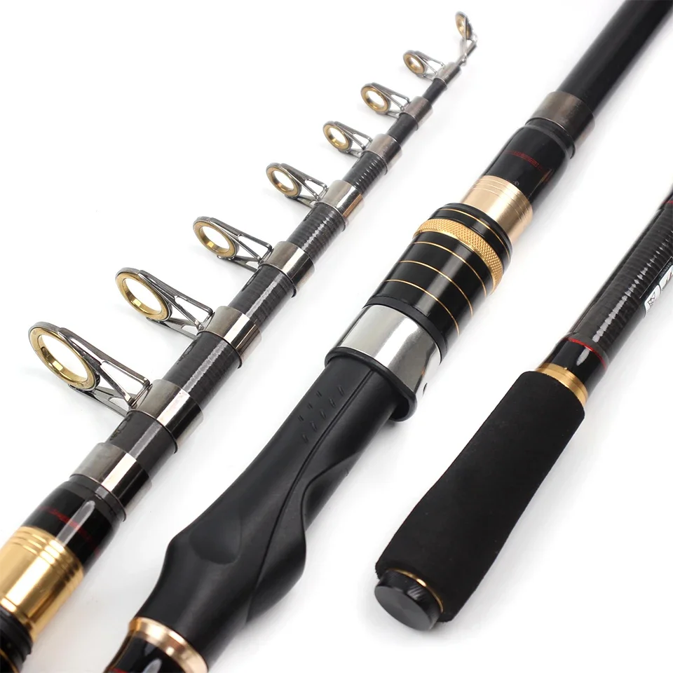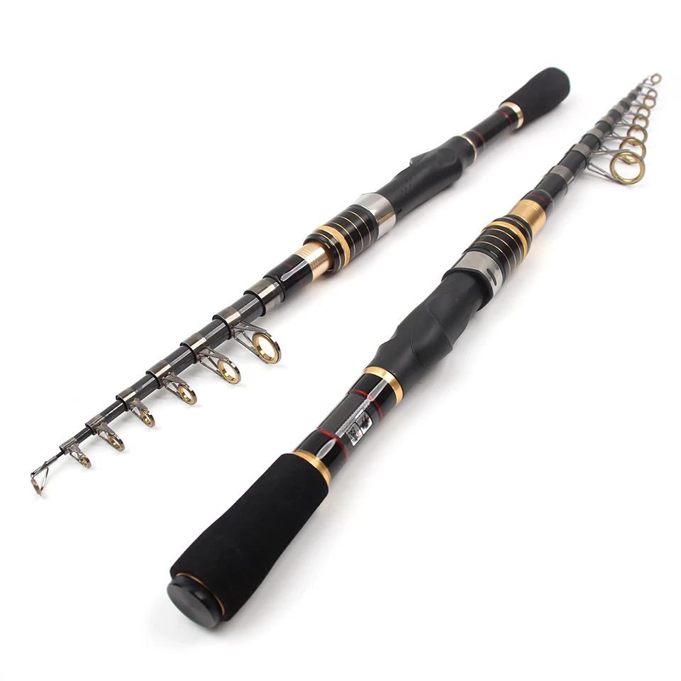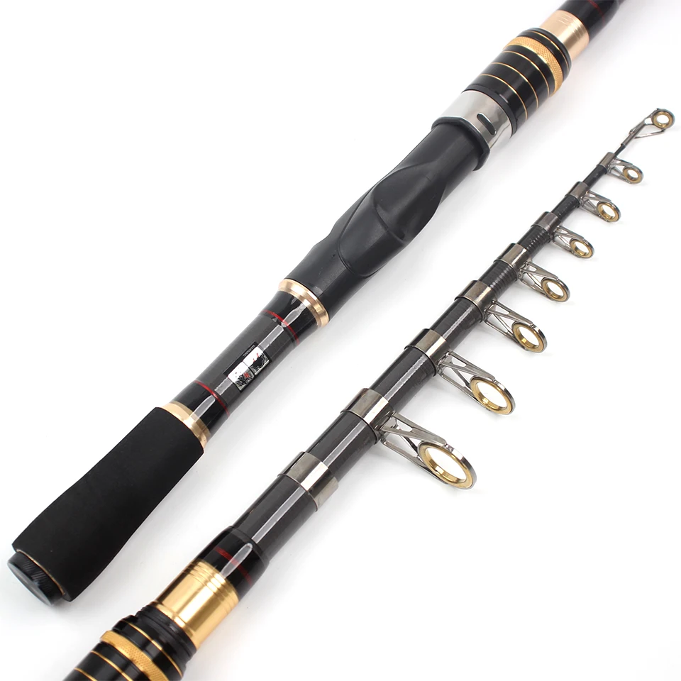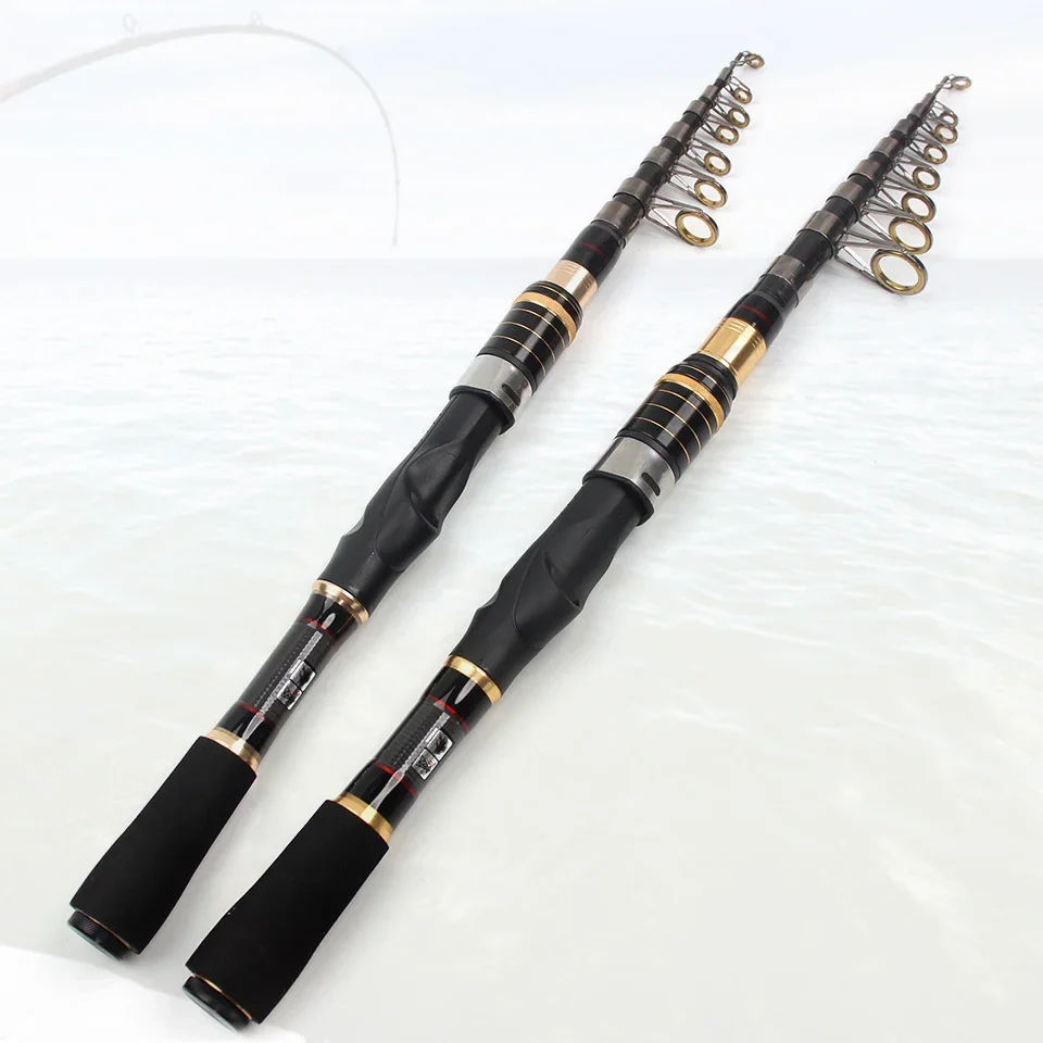 Caña de pescar telescópica de fibra de carbono, agua salada, agua dulce, Universal, ligera, potente, aparejos de pesca con caña giratoria de viaje.