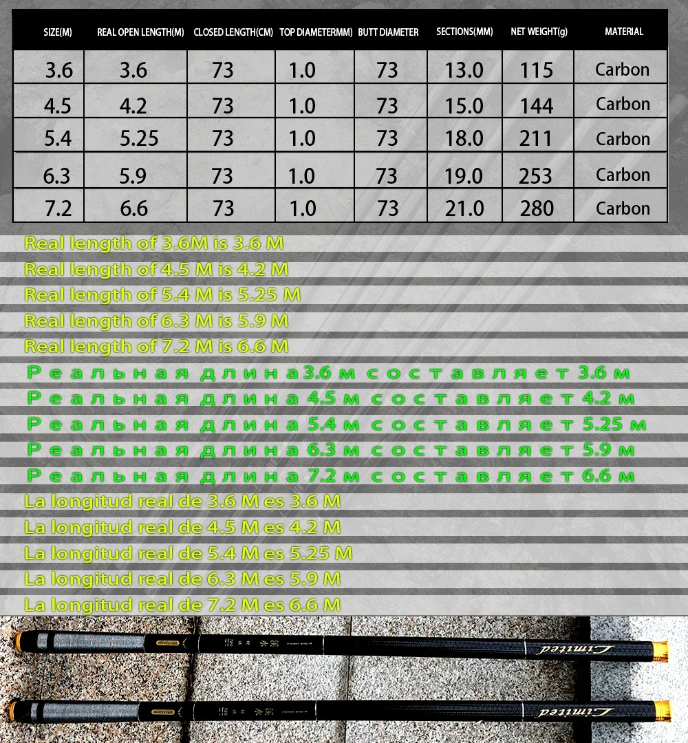 �5. El grosor de la caña es uniforme, por lo que evita la fractura Al enganchar un pez grande;