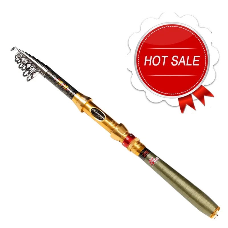 Caña de pescar telescópica de fibra de carbono, caña de pescar giratoria portátil, poste de viaje, barco de mar, roca