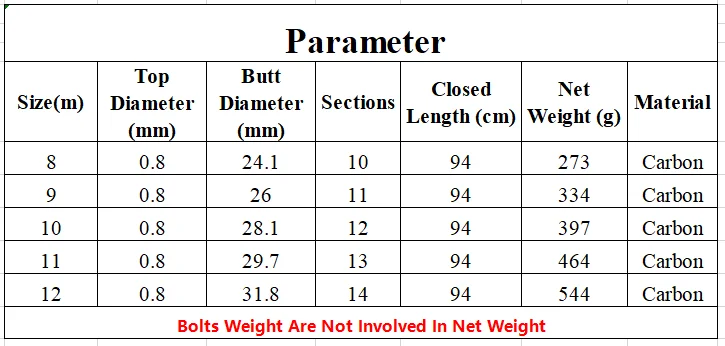 Longitud: 8-12 m Longitud cerrada: 94 cm