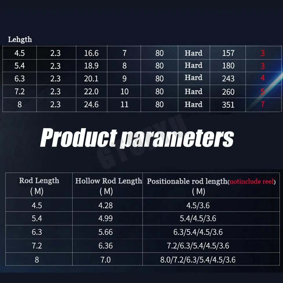 Caña de pescar telescópica de fibra de carbono dura, 4,5 M/5,4 M/6,3 M/7,2 M/8,0 M, posición ajustable, súper ligera y larga