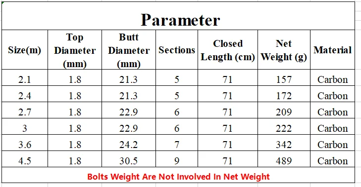 Longitud: 2,1-4,5 m Longitud cerrada: 71cm