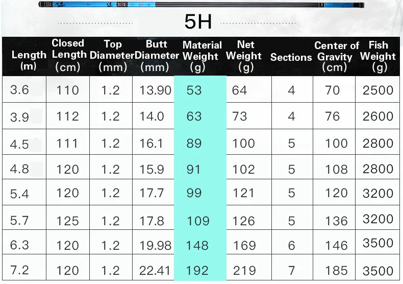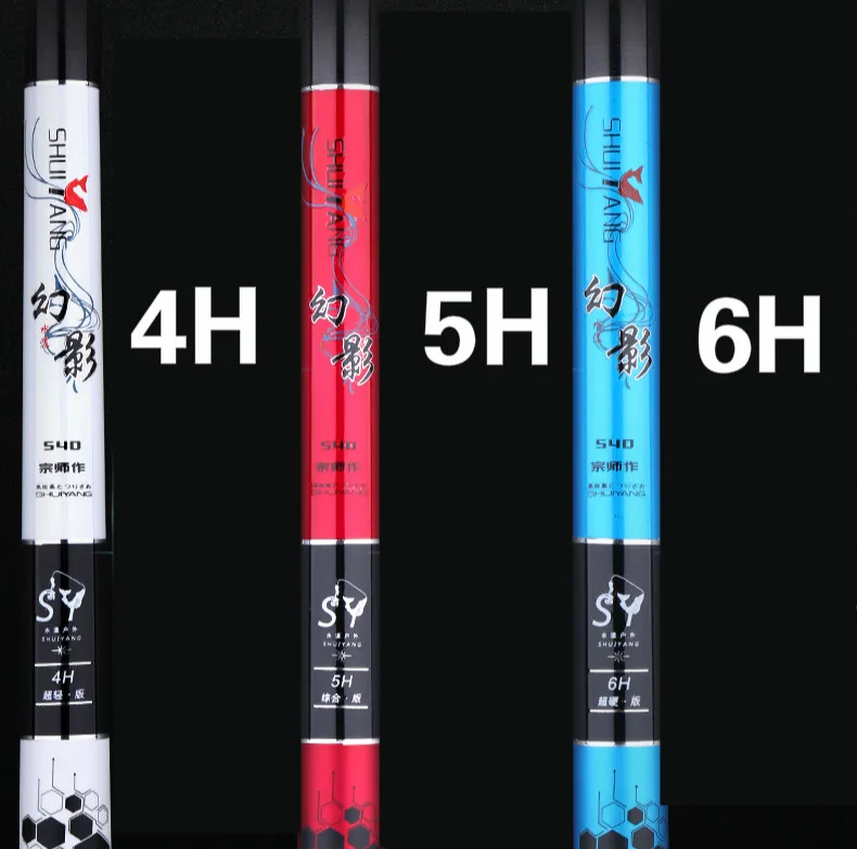4. no hay diferencia entre los tres tipos de cañas de pescar excepto por la dureza. Dureza: 6H 5H 4H