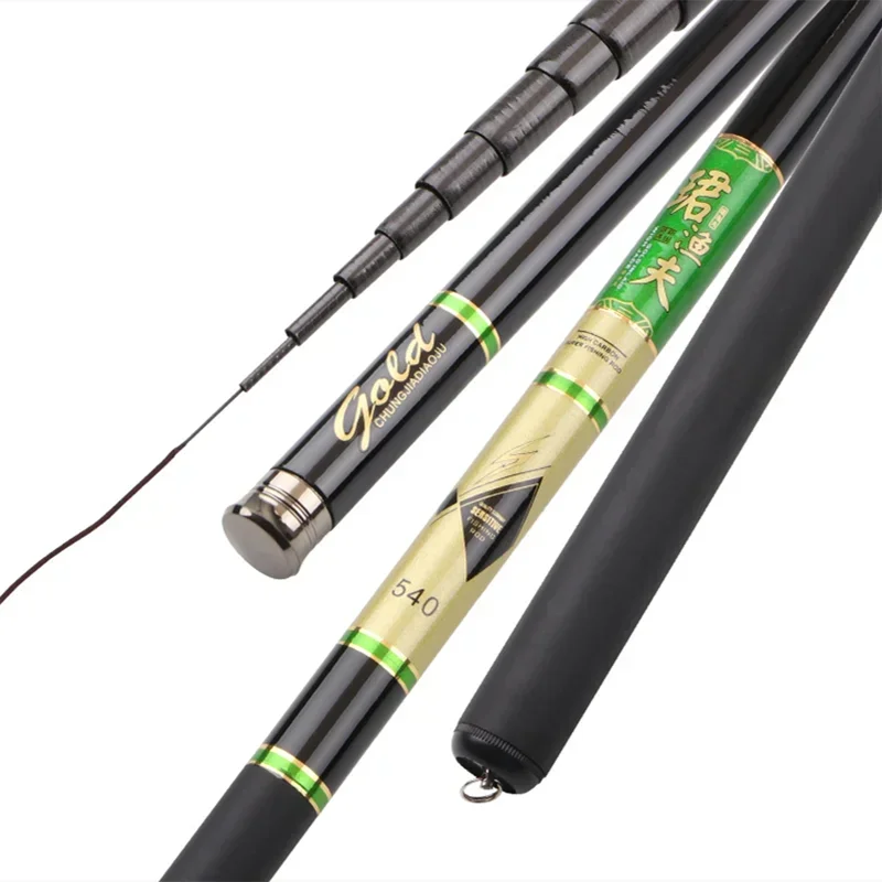 Caña de pescar telescópica de fibra de carbono, pequeña caña de pescar corta, caña de pescar portátil de viaje para agua de mar, agua dulce, lubina, pesca de trucha