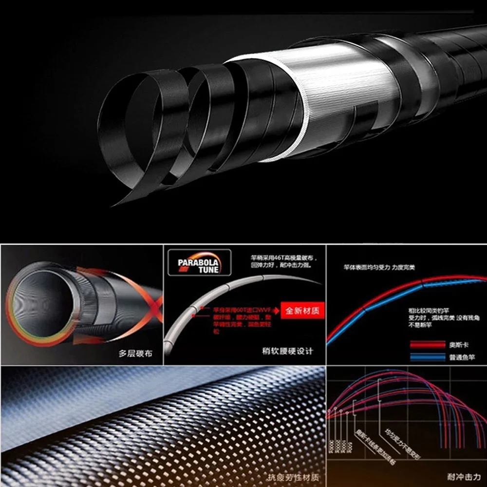 Presentamos nuestra caña de pescar en roca de alta calidad hecha con fibra de carbono de primera calidad, ¡perfecta para todas sus aventuras de pesca! Con su diseño giratorio telescópico, esta caña de pescar viene en una gama de tamaños-2,7 M, 3,6 M, 4,5 M, 5,4 M, y 6,3 M, lo que lo hace ideal para su uso en diversos escenarios, incluidos estanques de depósito, océanos y pesca en roca.