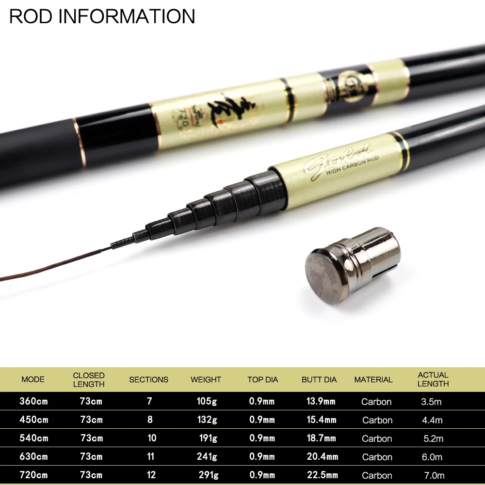 Nueva caña de pescar telescópica blanca dura Ultra ligera de alta calidad poste de mano de fibra de carbono para caña de pescar de carpa 3,6 M-7,2 M