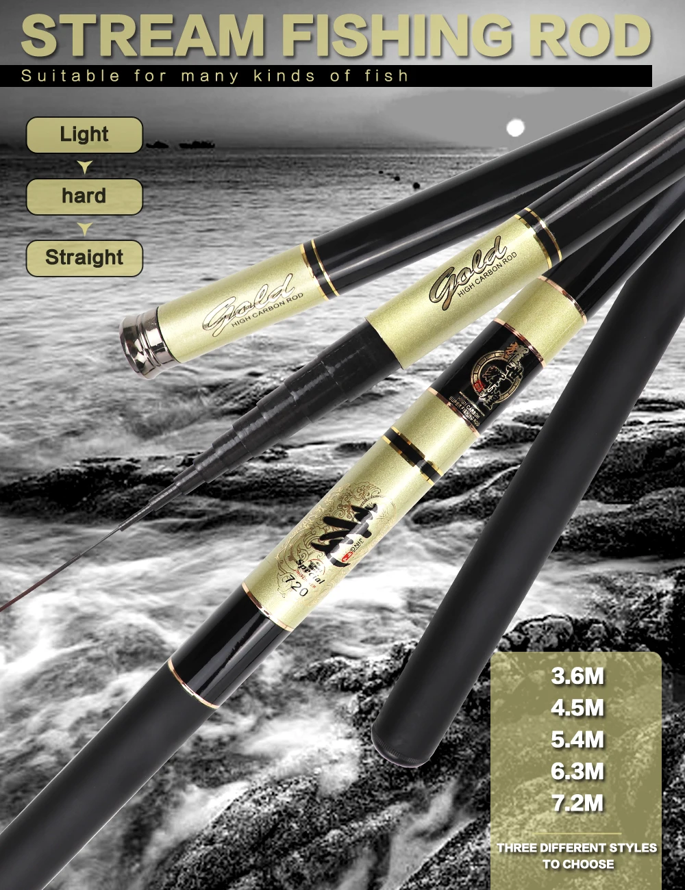 Caña de pescar superdura de 3,6-7,2 M