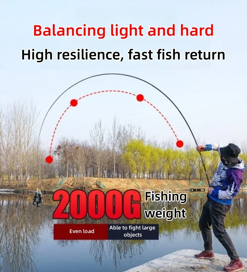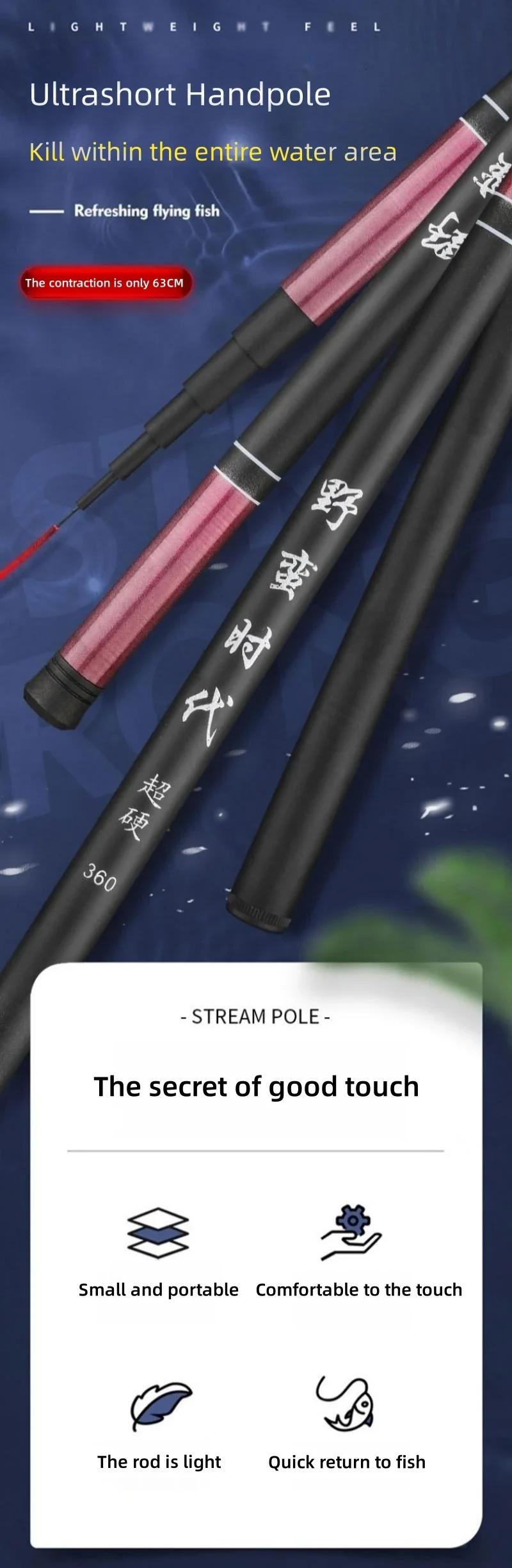 Caña de pescar de fibra de carbono de 2,7 m/3,6 m/4,5 m/5,4 M/6,3 m, poste duro ultraligero telescópico para carpa de agua dulce